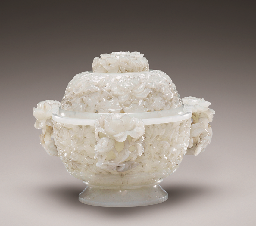 清·白玉透雕牡丹纹花熏 北京故宫博物院