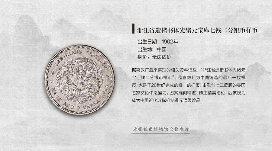 永银钱币博物馆馆藏——浙江省造楷书体光绪元宝库七钱二分银币样币