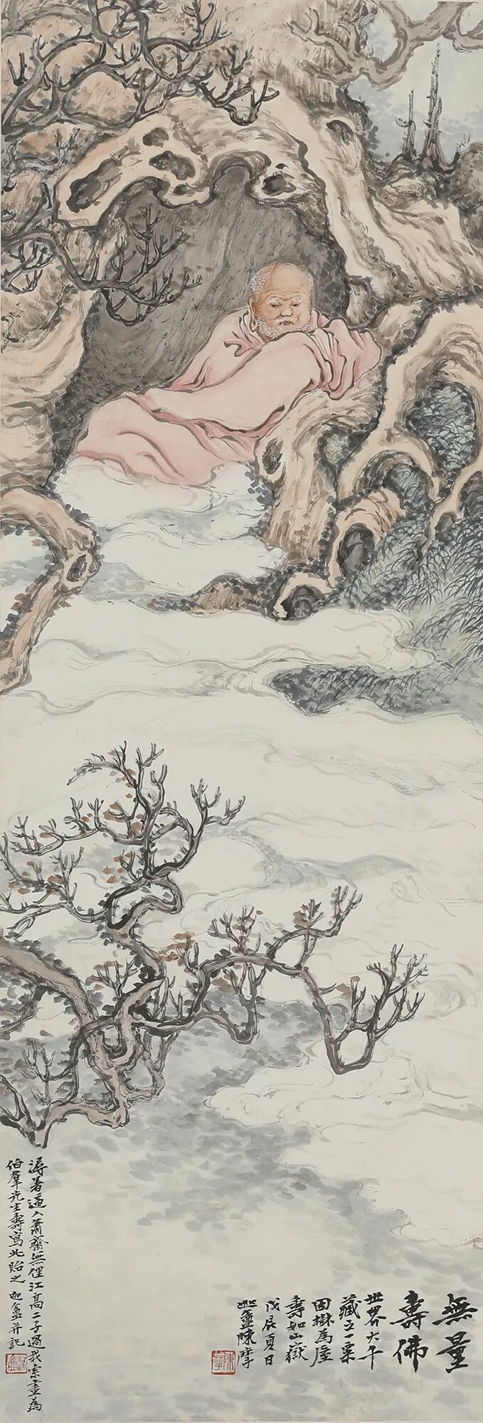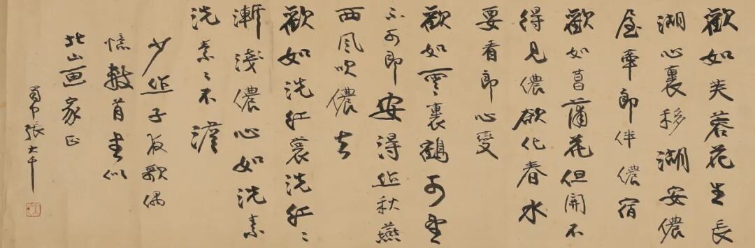 上款简介:峰邨北山(1899~1962),日本画家,曾师从高岛北海和小室翠云。1928年冬,张大千赴日,结识北山夫妇,并为其治印,作画。