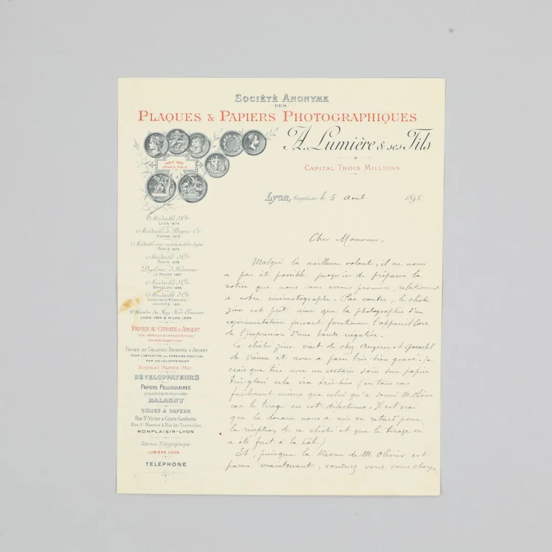 “电影元年”有关电影摄影机的重要信札