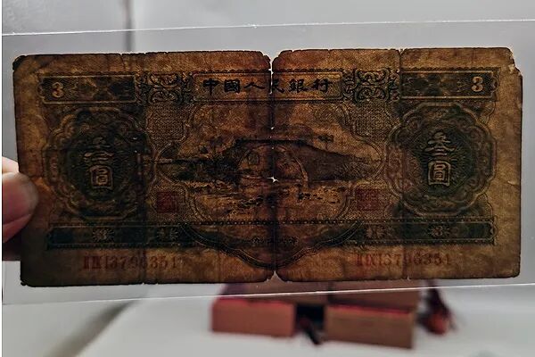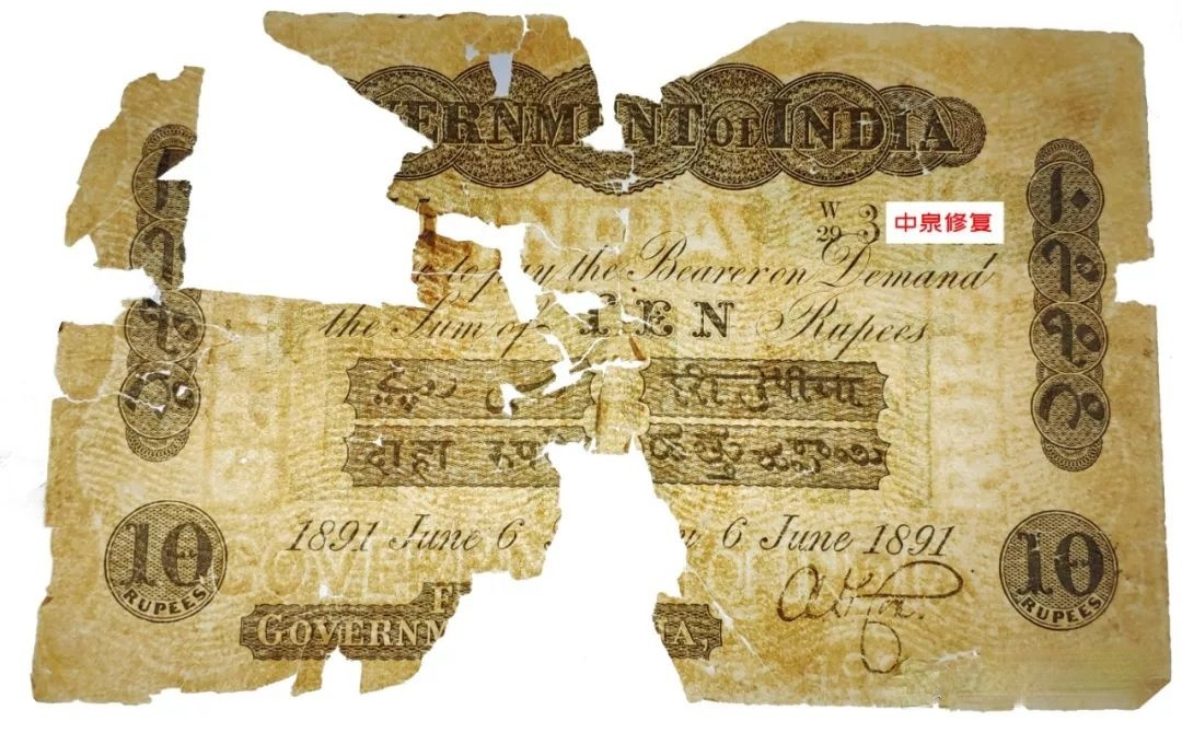 有人会问,那像文章开头那样破损、残缺的苏三元为什么还会有人买?前面也提到了,苏三元具有很高的收藏价值,存世量又少,所以有的人在购买这种品相的苏三元后,会送到专门的纸币修复机构,把它修复成完整的样子。给你们举个例子: