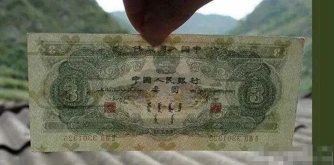 这是第二套人民币中的三元纸币,由于当时是委托苏联代为印制,所以现在称其为“苏三元”。苏三元整体为淡绿色,长16厘米,宽7.2厘米,比现在在流通的1元人民币稍微大一些。正面的图案为井冈山龙源口。
