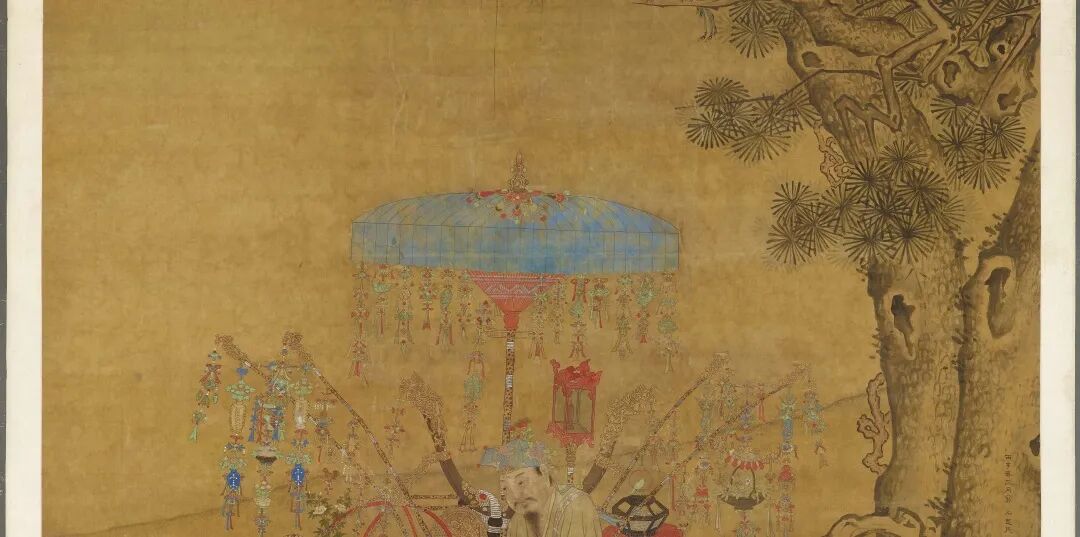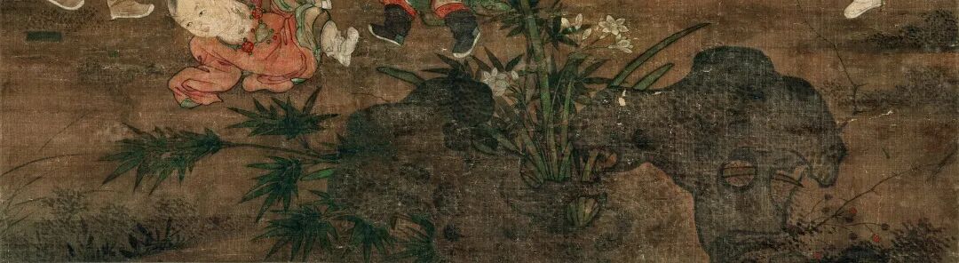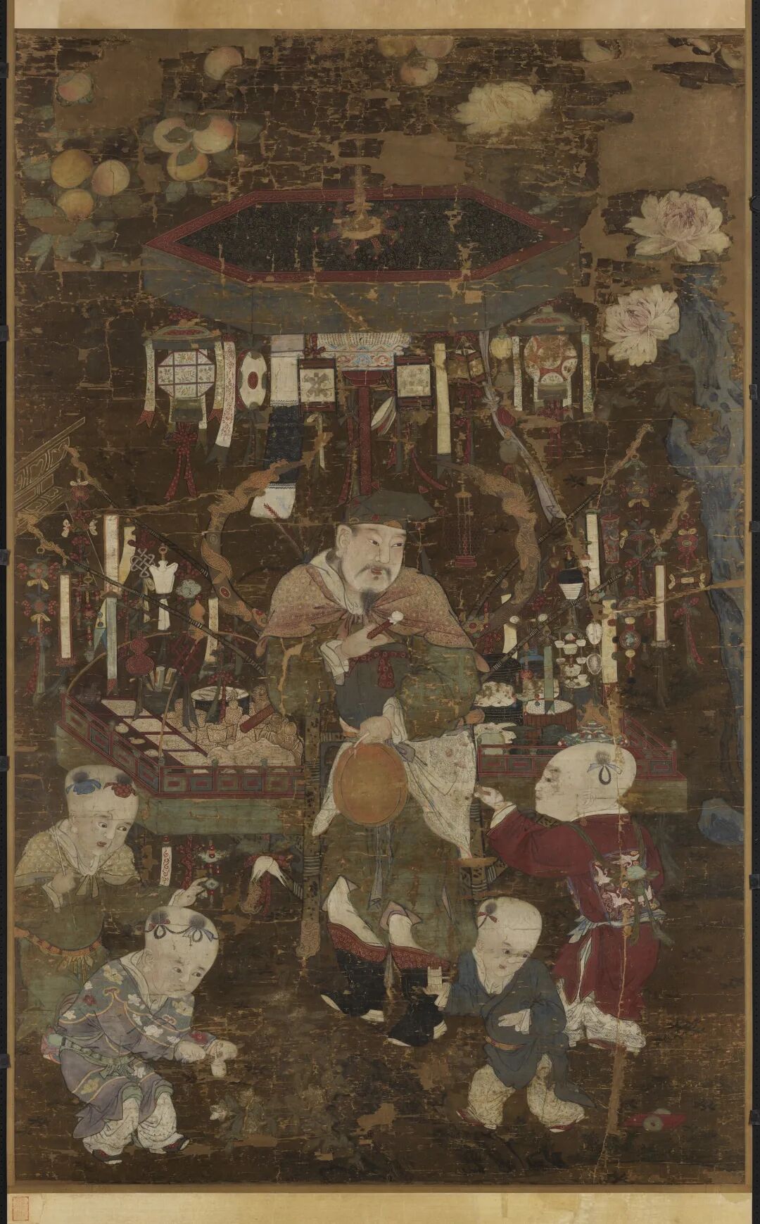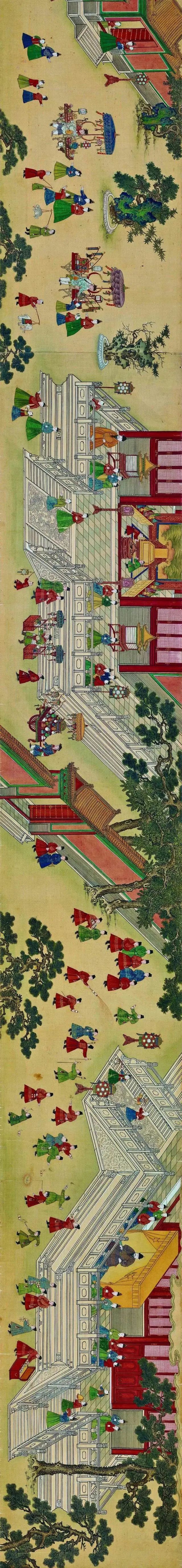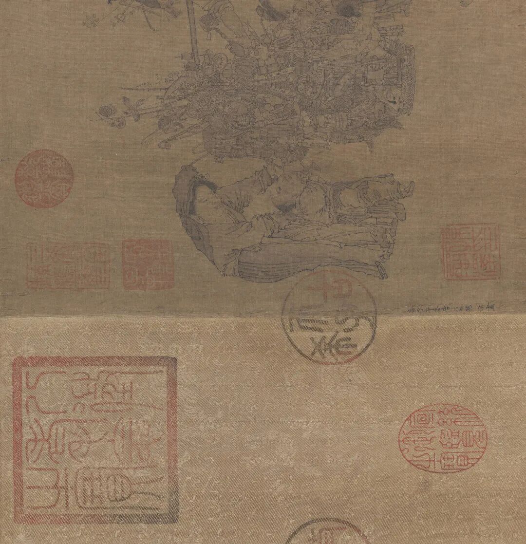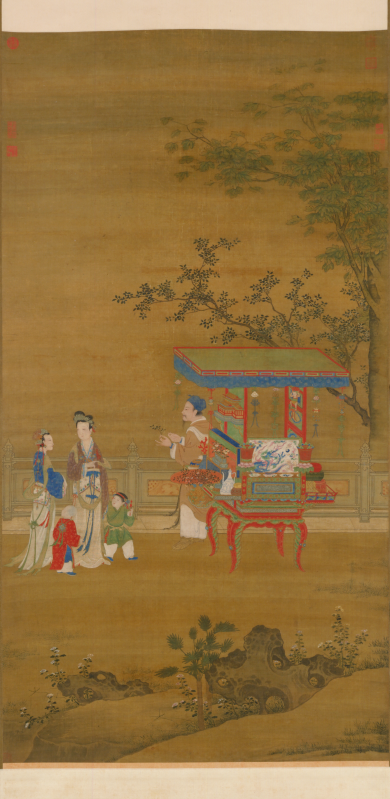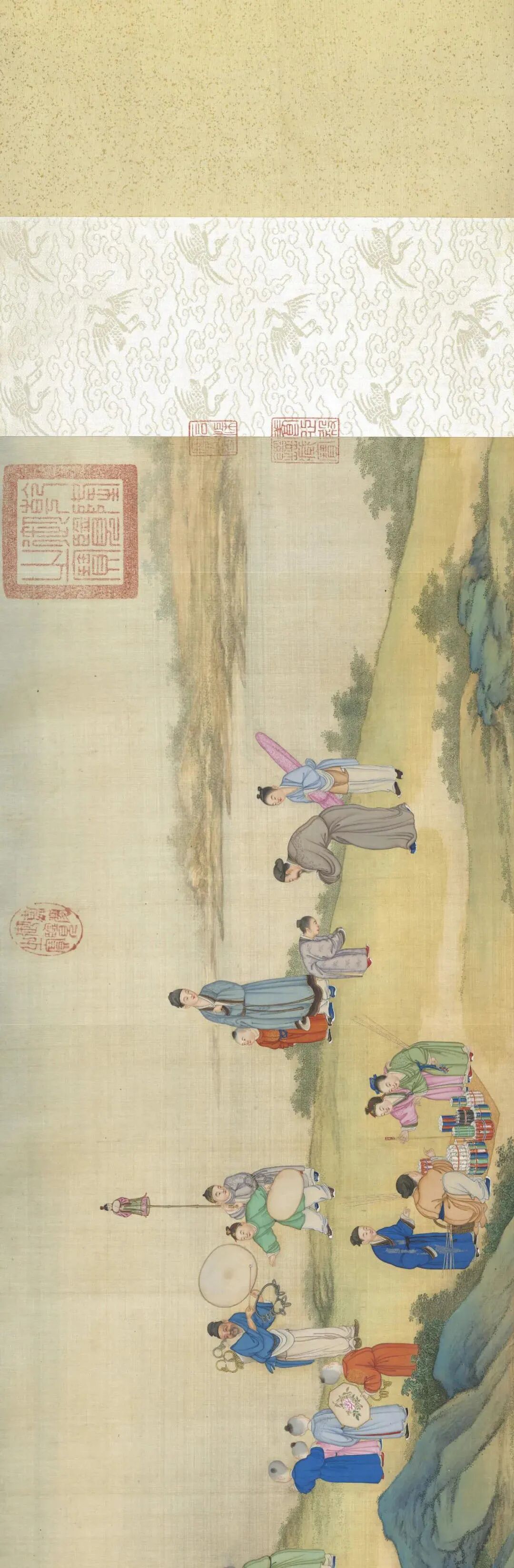 无款,旧传苏汉臣作,应为明人作品,画幅甚大,设色精丽。