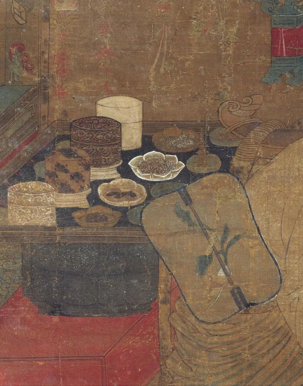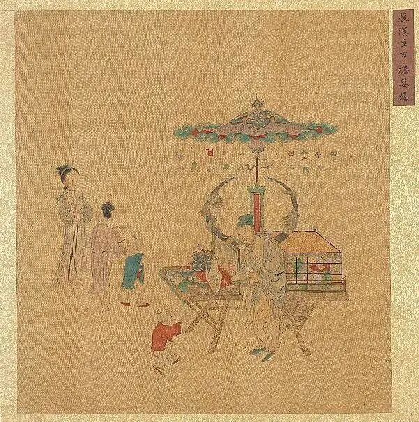 “卖浆”的说法早在《史记》中就有记载,如《魏公子列传》提到“薛公藏于卖浆家”。文献记载中“浆”的所指不一,有指酒水、茶水、果汁、粟浆等饮品的,也有指稀饭等液态食物的。从本图所绘盛器来看,图中所卖“浆”为茶水的可能性更大。