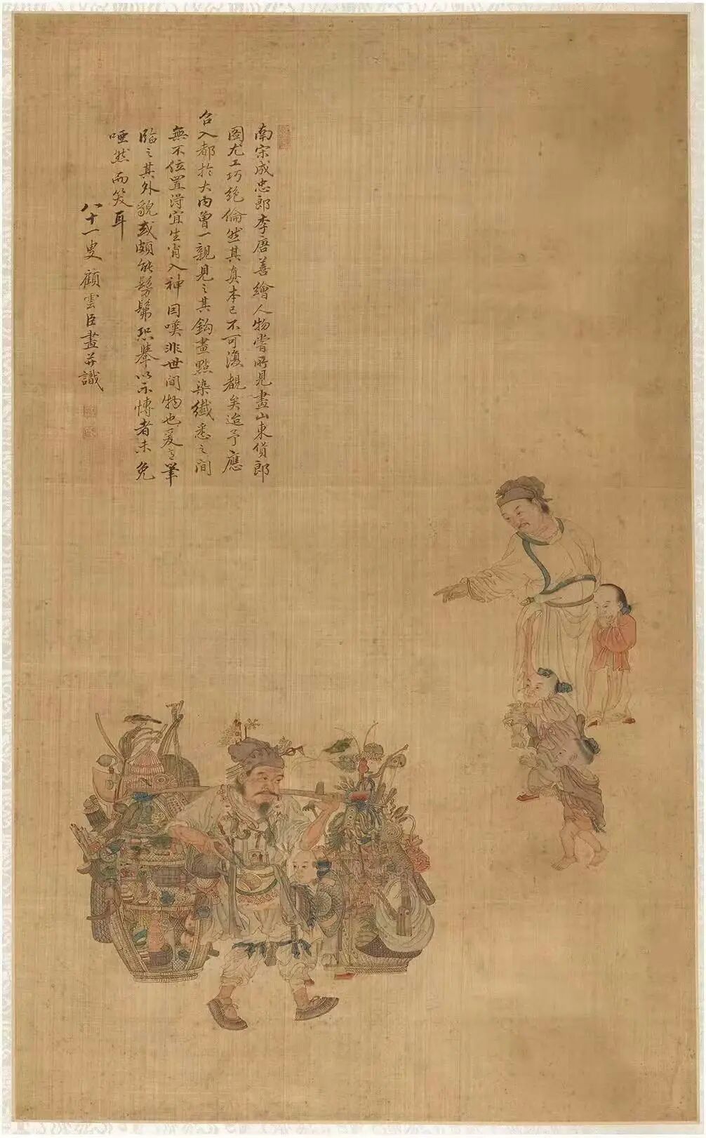 顾见龙的《货郎图》人物刻画写实生动,20世纪80年代经由国务院七人书画鉴定小组鉴定为国家三级藏品。