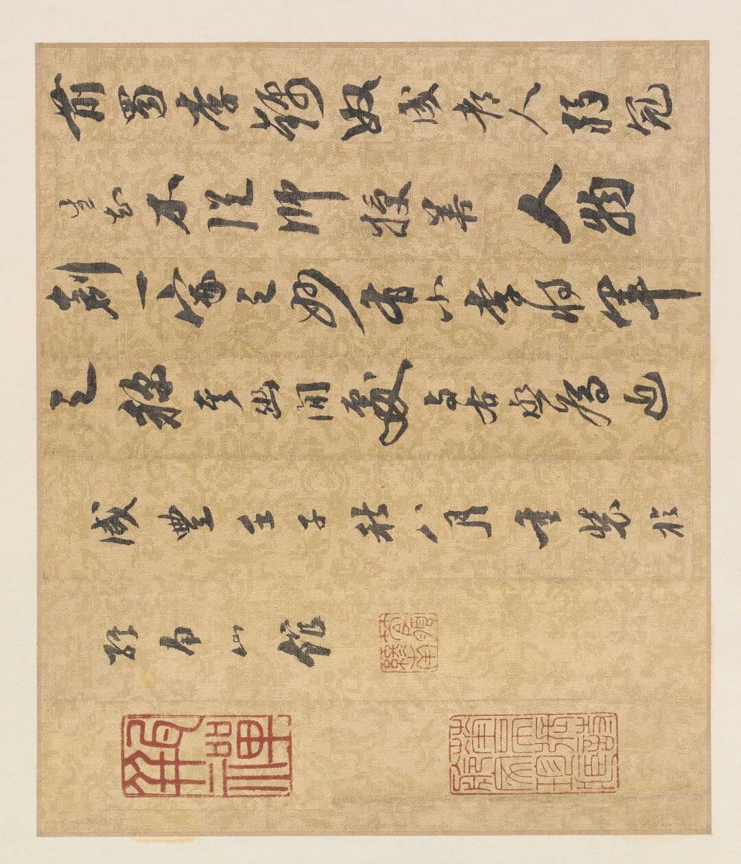 旧传李公麟作。李公麟(1049-1106年),字伯时,号龙眠居士,舒城(今属安徽省)人。北宋著名画家。神宗熙宁中进士,官至朝奉郎。好古博学,喜藏钟鼎古器及书画。擅画人物、佛道像,尤精鞍马,更以白描画法独步当世。