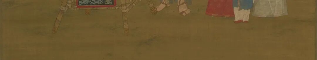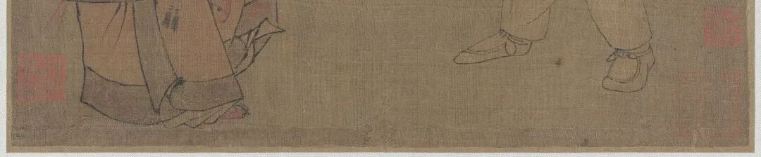 此幅无印款,旧传元王振鹏所作,无据。根据画面人物用笔,敷色和描绘的人物形象观察,可以看出是明代早期宫廷画家的作品,接近于刘俊,商喜。
