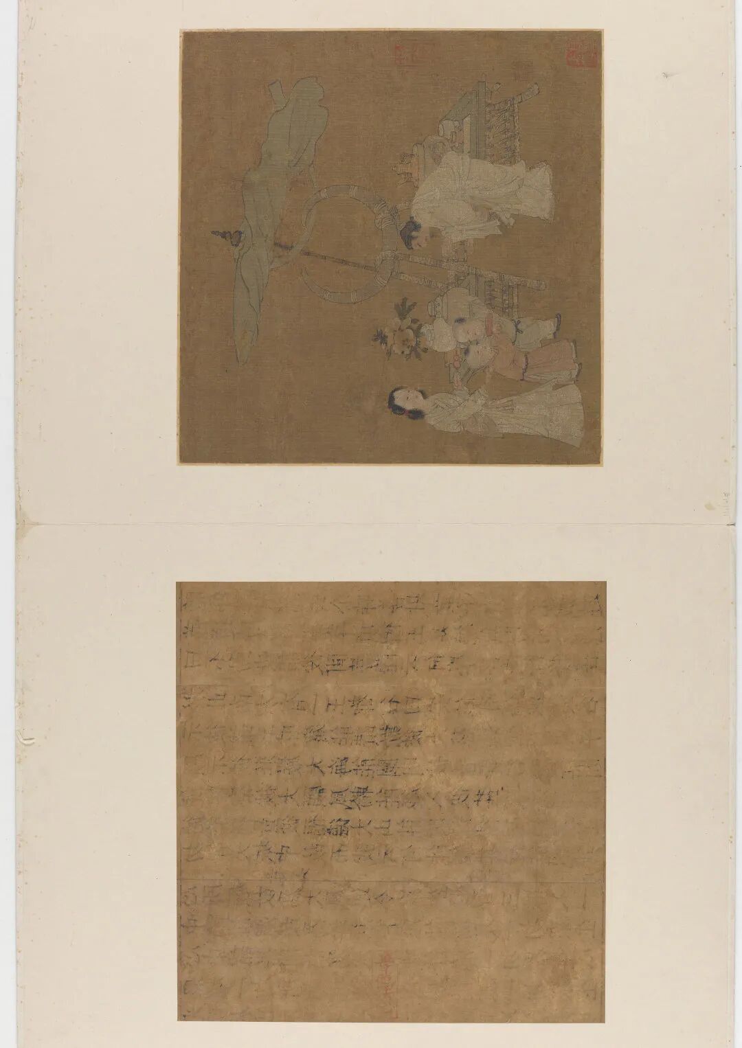 此图封面下只有一幅册页,册页左下方钤有一方“张则之”印章,别无款,亦无提跋,属于南宋时期的作品。张则之,又名孝思,中国清朝初年的书画收藏家,这幅画曾是他的藏品。1957年7月8日,此画由上海市文管会转交给黑龙江省博物馆收藏,1978年由北京故宫徐邦达先生鉴定为国家一级文物。