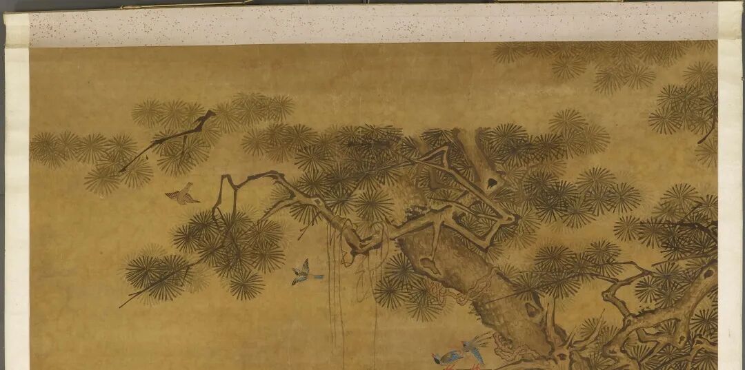 图绘货郎挑一副华丽的货担,货架勾龙描凤,婴孩衣着富贵,与北京故宫博物院藏《夏景货郎图》用笔敷色相似,如此或是宫廷画家所作。托名崔子忠,与崔氏风格不符,且松间蓝山鹊小于松针,若专业画师不会出如此差错,或是人物画家不擅花鸟画者。