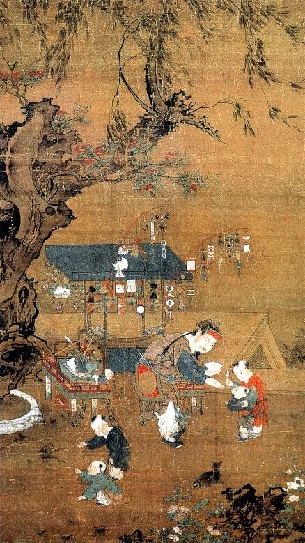 苏汉臣,南宋画家,河南开封人。画人物、仕女及宗教画,用笔工整细劲,着色鲜润。尤工于货郎担和婴儿嬉戏之景,情态生动。其存世作品有《货郎图》、《秋庭婴戏图》等。