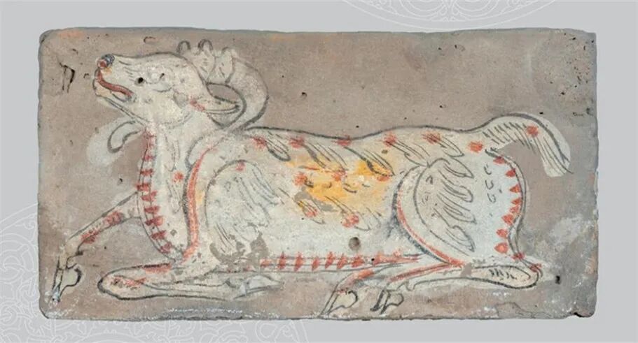 在河西地区魏晋墓葬中出土了大量神禽异兽题材的彩绘画像砖,内容包含玄鸟、白象、神羊、天马和四神等,一般镶嵌于河西魏晋墓葬最具特色的墓室照墙之上,构成了一个杂物奇怪、品类群生的世界。无论是凶猛威严,可除凶辟邪、镇守墓室的青龙、白虎,还是凝聚人类想象力,象征符瑞的受福、万鳣,都寄托了时人对神灵保佑的祈愿。