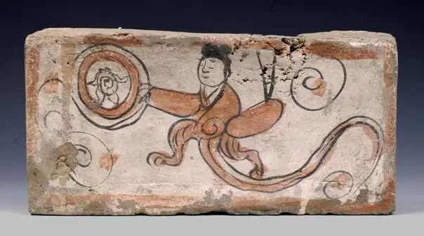 砖饰以红色边框,中间人首蛇身的女娲左手持规,右手持月轮,月轮中有一蟾蜍。与河西魏晋画像砖中常见的伏羲持规、女娲持矩不同,此砖上女娲左手持规而非持矩,有学者认为可能是工匠绘制时产生的误差。