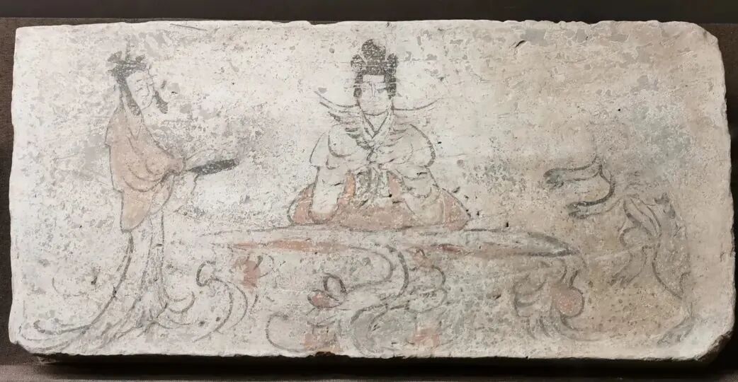 砖呈长方形,白粉涂底,墨线勾勒人物。