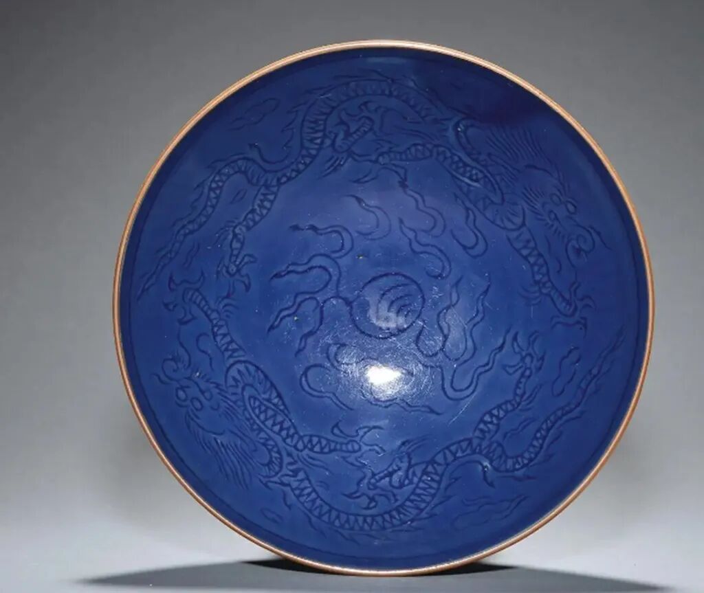 明 嘉靖回青釉暗刻云龙纹碗