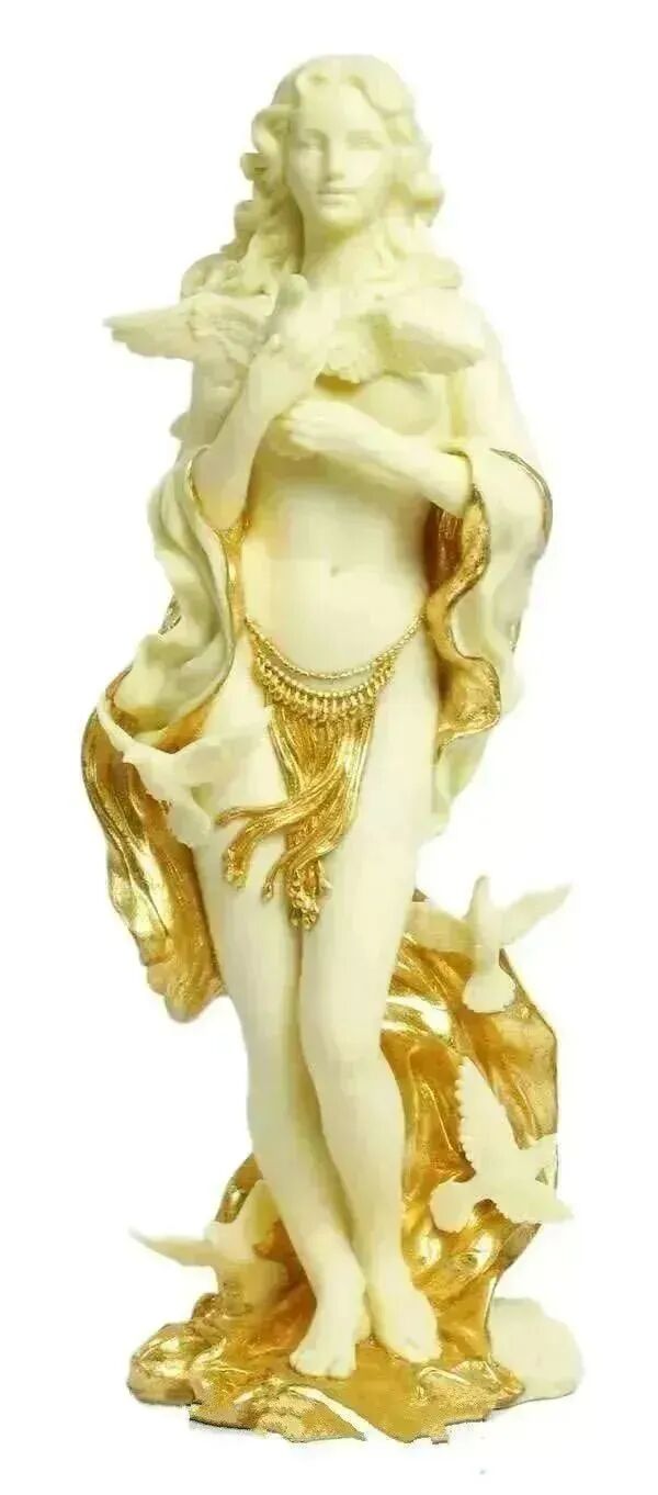 爱神阿芙洛狄忒是宙斯和狄俄涅的女儿,她的美丽仿佛白昼闪烁的光芒,粉红的面颊犹如桃花,一头金色的长卷发闪闪发光,眼中仿佛蕴有湛蓝的海水,因此她成为了众神中最受喜爱的女神。据说她被父亲强嫁给不爱的火神赫菲斯托斯,婚后经常对丈夫不忠,有很多恋爱传说,最著名的就是和战神阿瑞斯的故事啦!
