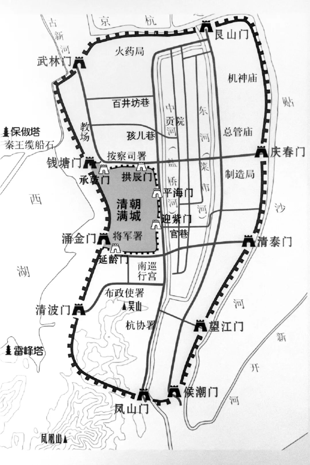 元军攻占临安府后又将其改为杭州,至元十五年(公元1278年)改设杭州路,置总管府,二十二年(公元1285年)又改设江浙行省,杭州成为省治由此开始,并沿用至今。元代杭州仍延续了南宋的繁荣,马可波罗称之为“世界上最美丽华贵的天城”。元末张士诚起兵雄踞江南,他组织了杭州城的又一次重筑,再度延续了南宋时改建吴越罗城的思路,城墙南界内缩二里到了凤山门,昔日子城连同凤凰山被抛出城外。过去的城市中枢和皇室旧阙虽被弃用,东扩三里的城界却纳入了更多繁华市井。张士诚修筑的杭州城池在明清继续沿用,这也是杭州最终形成的主城池,西仍贴西湖烟柳,东展至贴沙河南岸,南宋的东护城河被收为同中河平行的穿城水渠,城门减少为十座,各门被市民编成了顺口溜:“北关、坝子、正阳门,螺蛳沿过草桥门,候潮闻得清波响,涌金、钱塘共太平。”清顺治七年(1650年)又在西湖之滨建旗营,置镇守将军,圈地1436亩,成了杭州的城中之城,西城利用府城墙,另三面开五门,周长约九里,规模和唐宋子城差不多,性质却截然不同了。子城是杭州的行政中枢所在,有衙署等设施,旗营则专用于八旗军驻防,城内只有八旗军及家眷。到民国初年,旗营和各城门逐渐拆毁,西城墙拆去了,城区和西湖拥抱得更加紧密,在旗营旧地则兴起了湖边邨、思鑫坊等西式里弄,加上湖滨路、新市场的开辟,杭州逐步向现代城市转变。1959年最后一段城墙也被拆去,仅存凤山水门,1970年,杭城最后留在地面的城门鼓楼(宋朝天门)终于消失。如今的杭州已远远超出了历史上的规模,先是向西扩展,把西湖纳入城中,又把钱塘江纳入城市核心,自山间迁至湖滨,再从江岸望向大海,伴着涛声的旋律,杭州扬起风帆,迈向世界。在杭州城市飞速发展的阶段,历史遗迹也有过无可挽回的损毁,但杭州城的历史记忆绝不能淡忘,1994年杭州在明清十座城门的旧址立起了名碑,又在2002年重建鼓楼,2006年重建庆春门,为市民们提供一个可凭吊、回顾历史风烟之地。相比复建,考古发掘是再现历史记忆更真实的方式,尤其是已藏在现代市区地下的临安城遗址,自1995年以来,除了皇城和德寿宫遗址,南宋临安城的许多主要建筑都经考古面世。它们既有太庙、太学、三省六部这样的王朝见证,也有临安府治、府学、钱塘门等古城坐标,更有恭圣仁烈杨皇后宅这座精美的宅邸园林,它们就让一度模糊的临安城面貌逐渐清晰。![]()