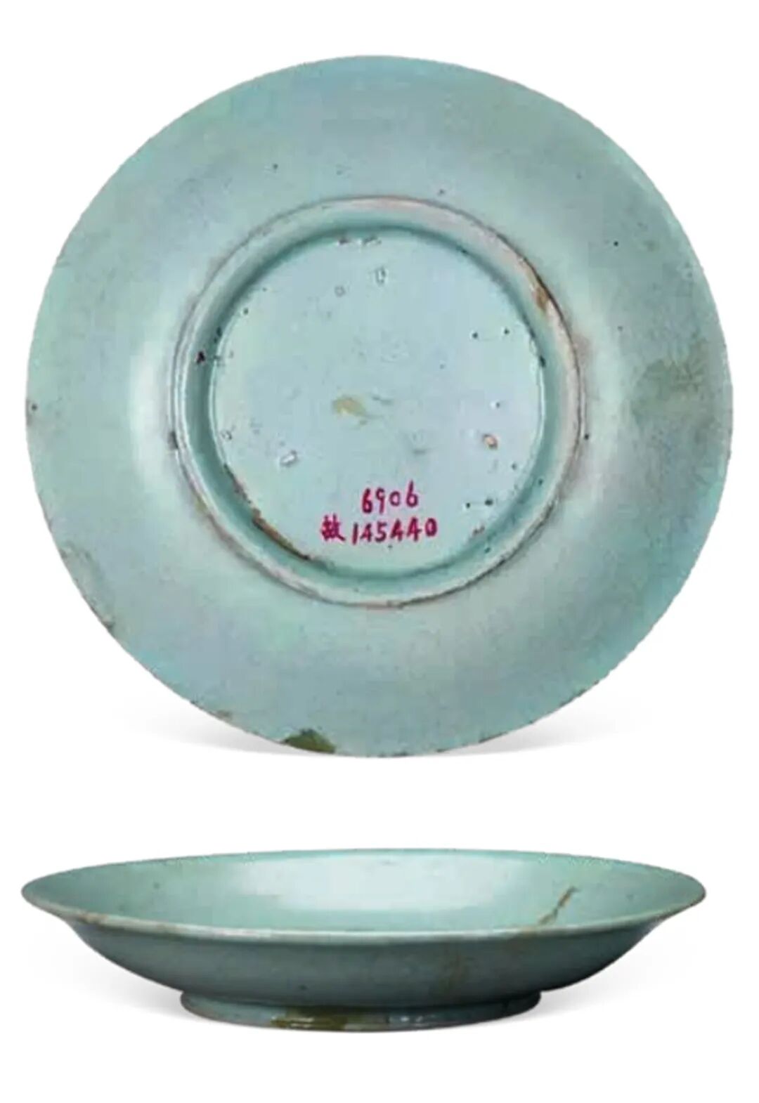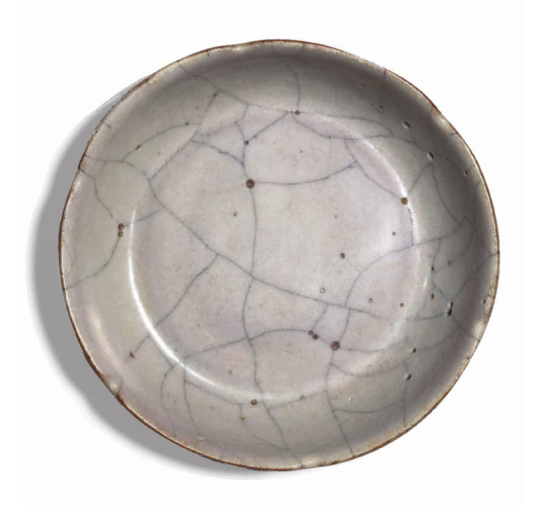 古往今来,汝窑天下闻名,迄今仍长盛不衰。藏家慕其至美之姿,不惜千金亦难求得,故莫不视之为终极的收藏目标。根据北京故宫2015 年汝瓷特展图录中的统计,世界各地博物馆和私人收藏只有九十件传世汝瓷,而其中私人珍藏仅占八例,其珍贵可见一斑。在这九十余件传世汝瓷中,盘占 28 件,而多数直径尺寸较之本品都要小一至五公分,故此件在同类器物中属于特大号,十分罕见。近几十年中,国内外市场释出汝窑仅八件,皆天价成交。而本件汝窑盘形制精美,传承有序,又经过热释光技术的年代检测,诚为可遇而不可求的至宝。