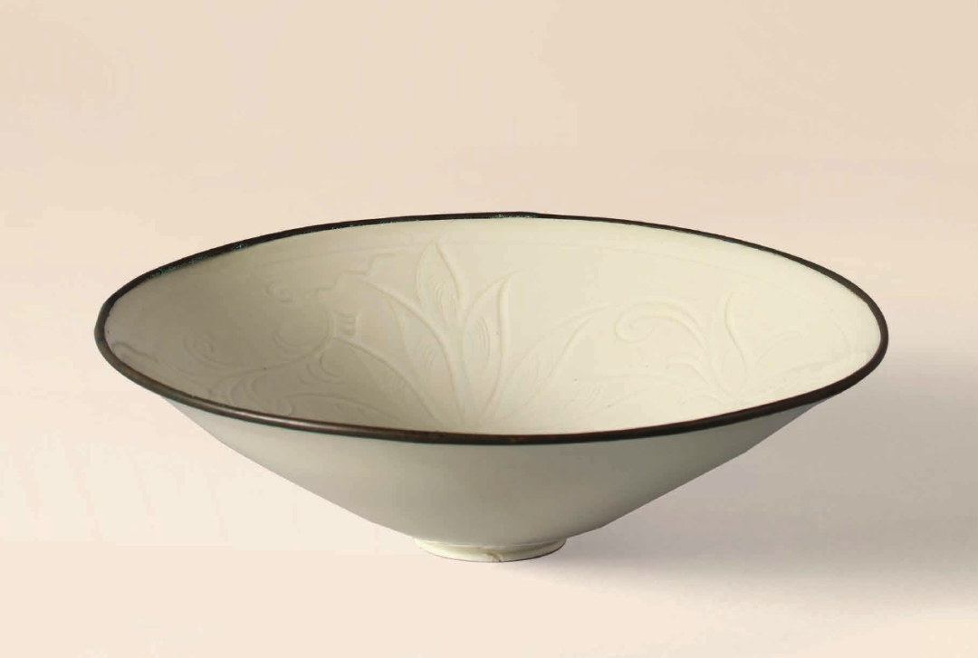 北宋 定窑白釉刻花卉纹斗笠碗