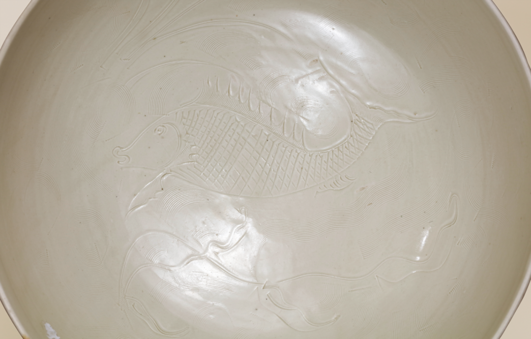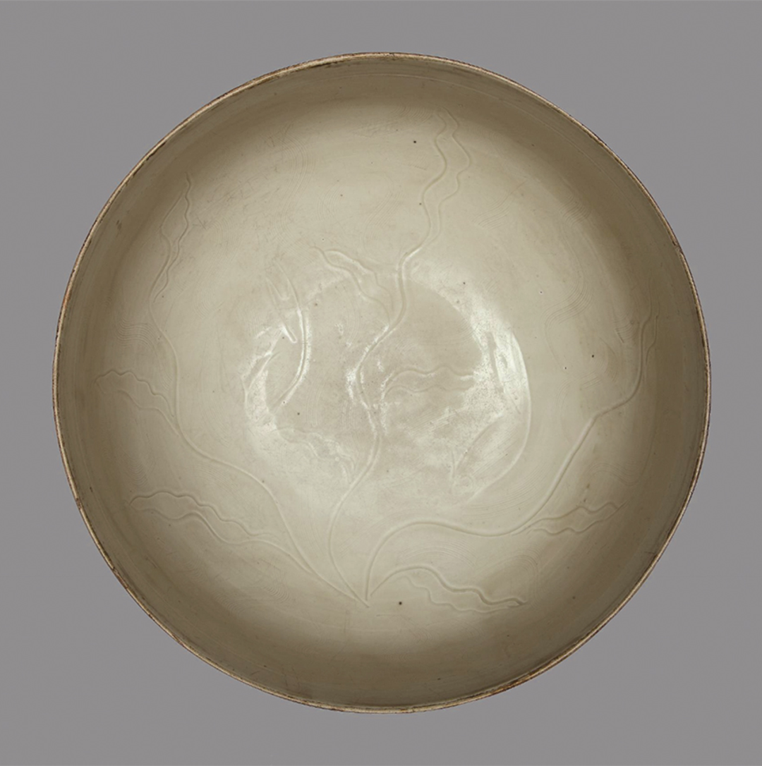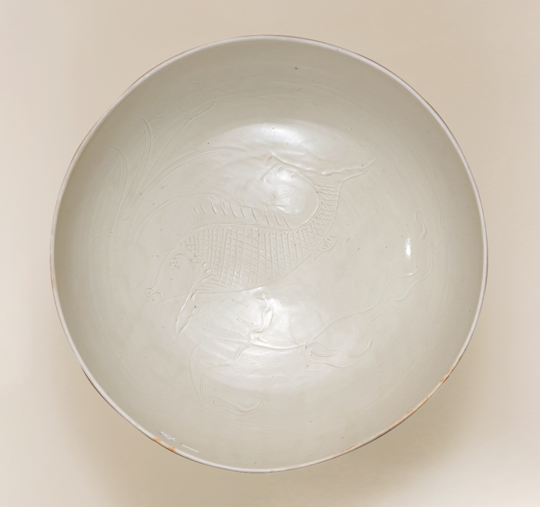 明定窑刻鱼戏莲花大墩式碗