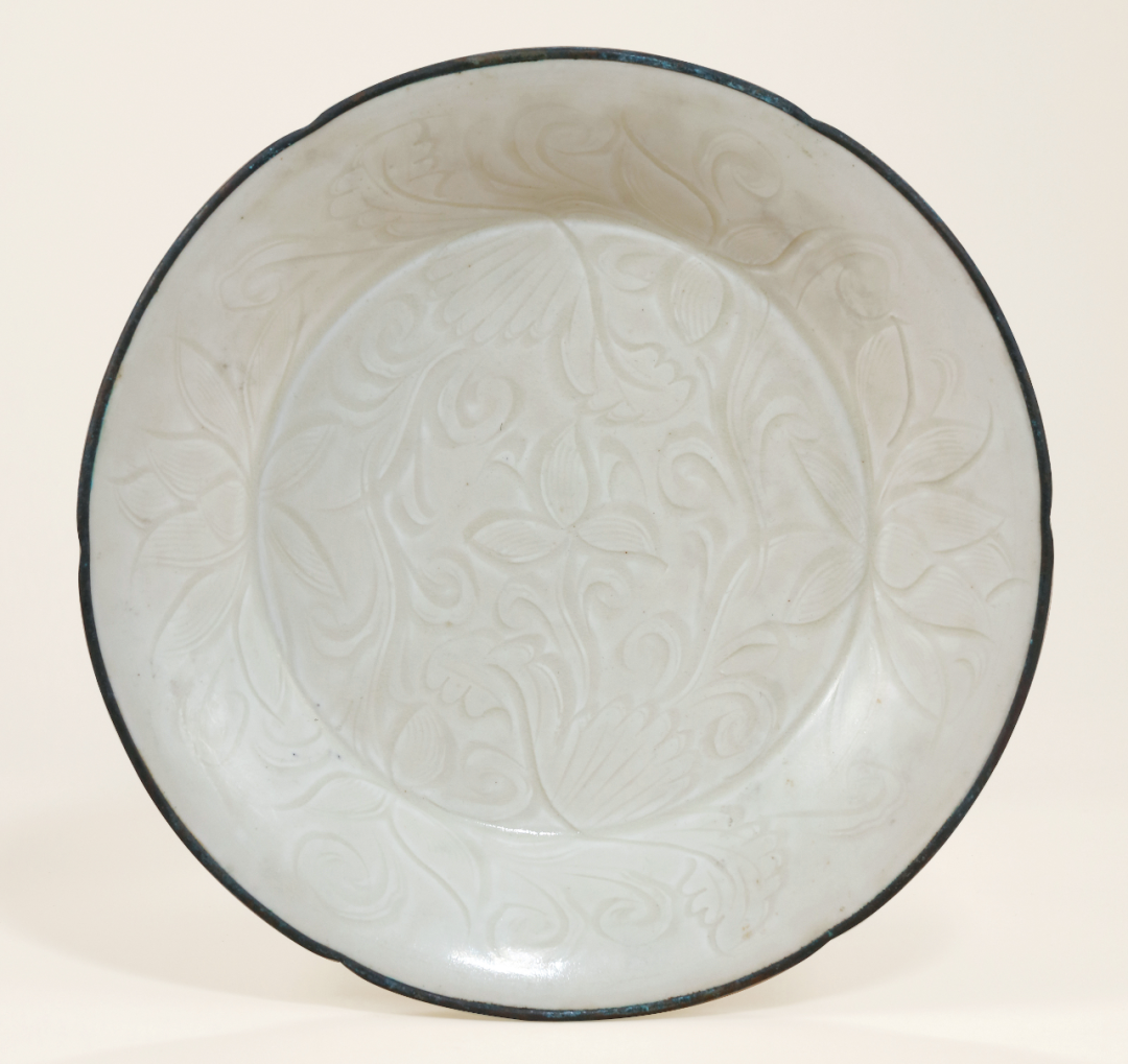 明定窑刻花卉纹葵口盘