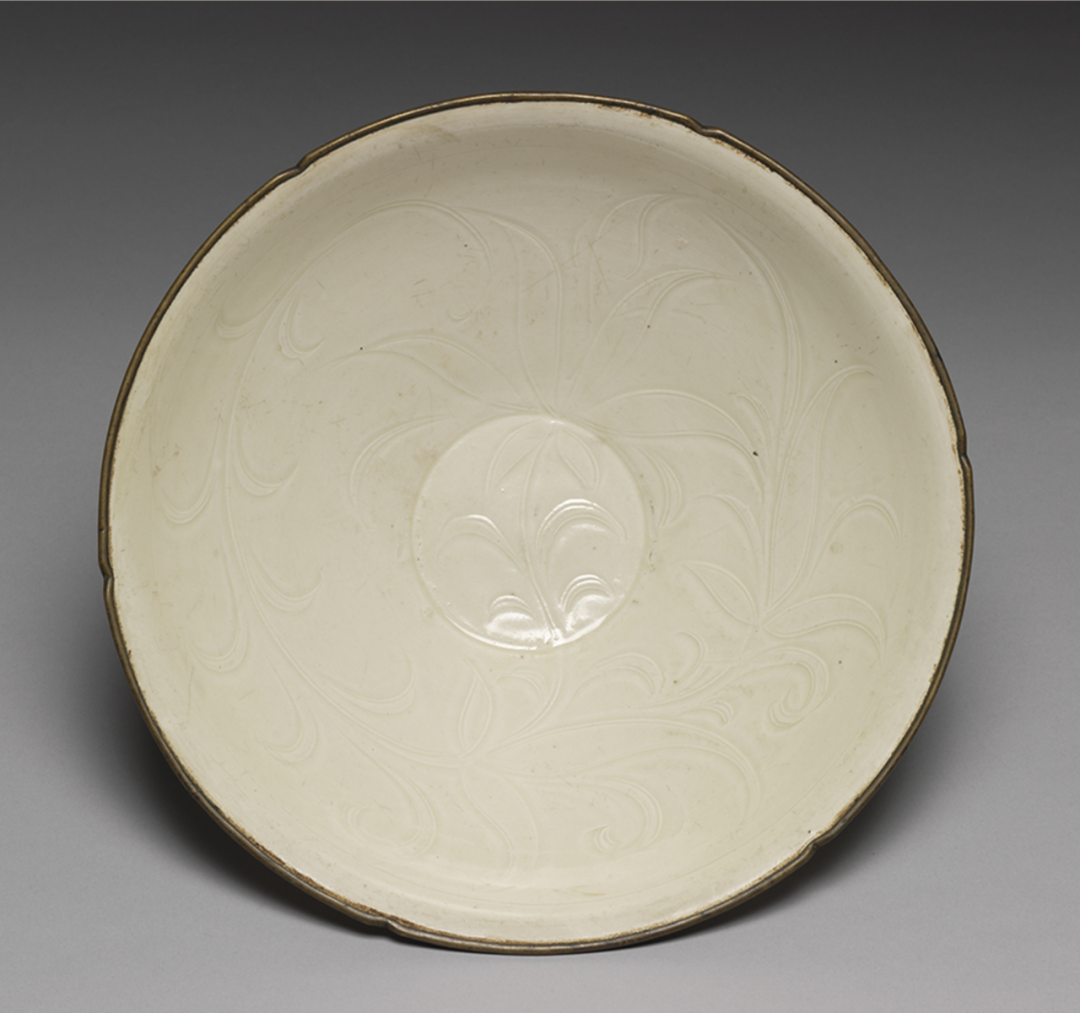 北宋 定窑葵口白釉划花萱草纹碗