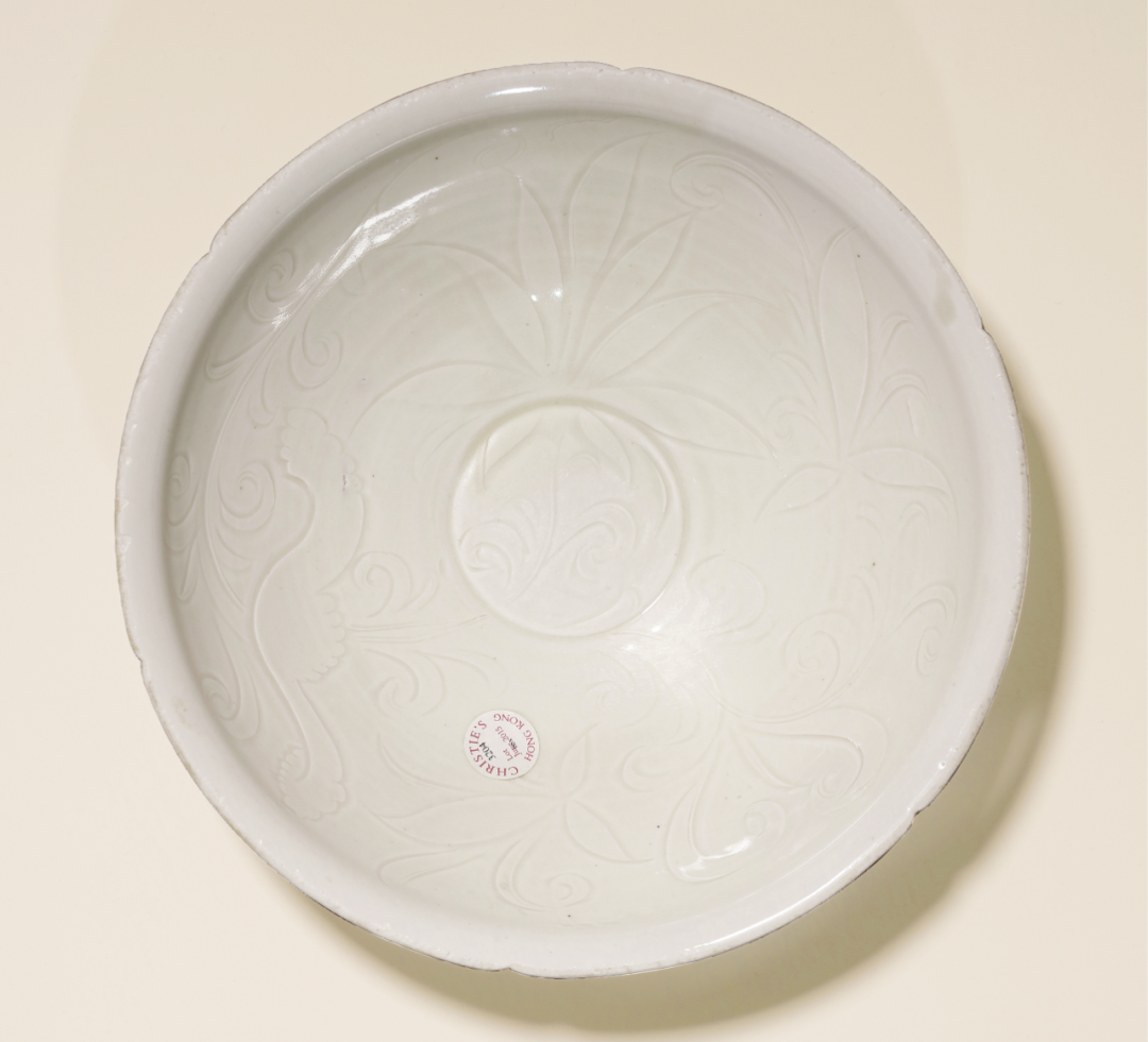 北宋 定窑白釉六瓣划花莲荷螭龙纹碗