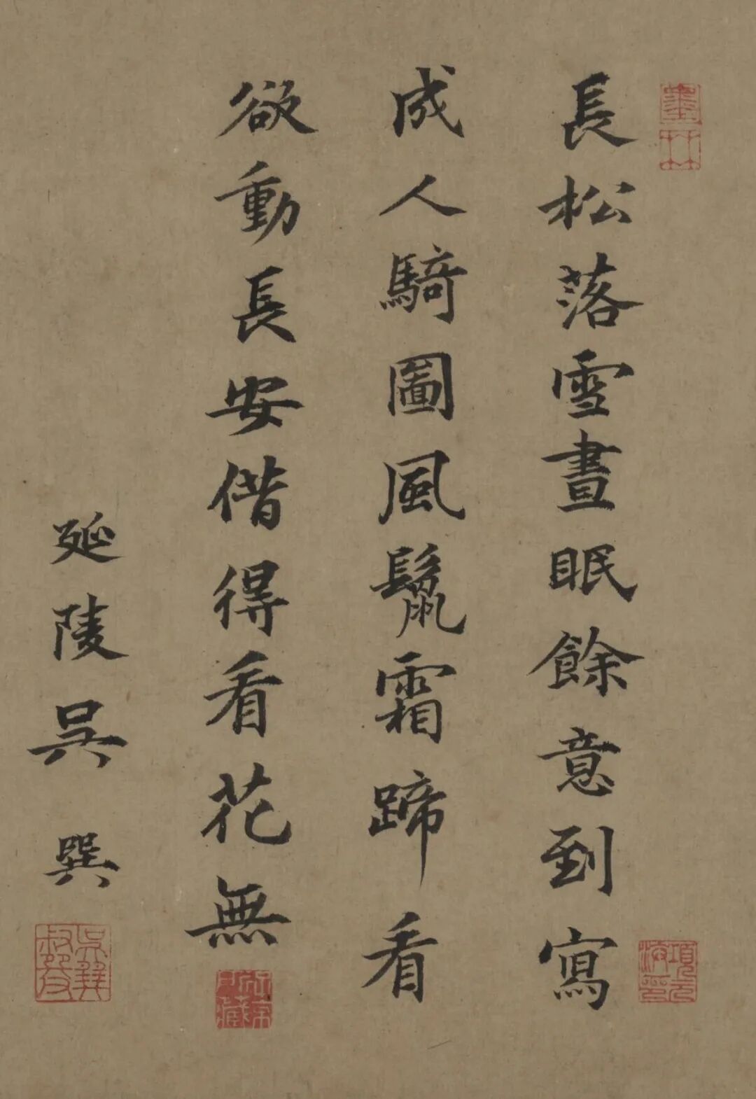 “长松落雪画眠余,意到写成人骑图,风鬃霜蹄看欲动,长安借得看花无。延陵吴巽。”