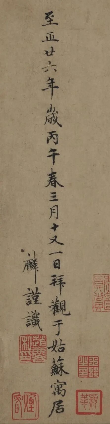 “至正廿六年岁丙午春三月十又一日拜观于姑苏寓居。麟谨识。”