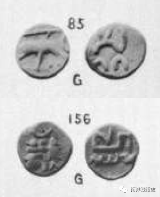 沃尔特·埃利奥特(Walter Elliot)在《南印度钱币》中记录了两枚钱币,与东恒加法南金币具有相似的设计,从中或可窥见东恒加法南金币的设计传承。