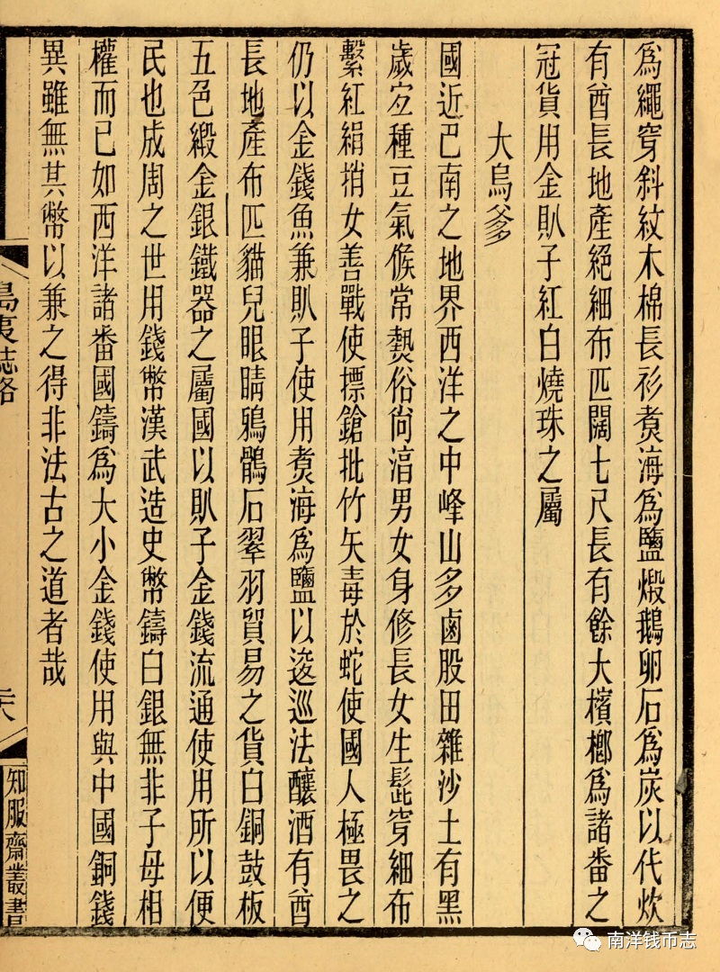 《岛夷志略》“大乌爹”条提及的当地钱币有“金钱”和“(贝八)子”两种。