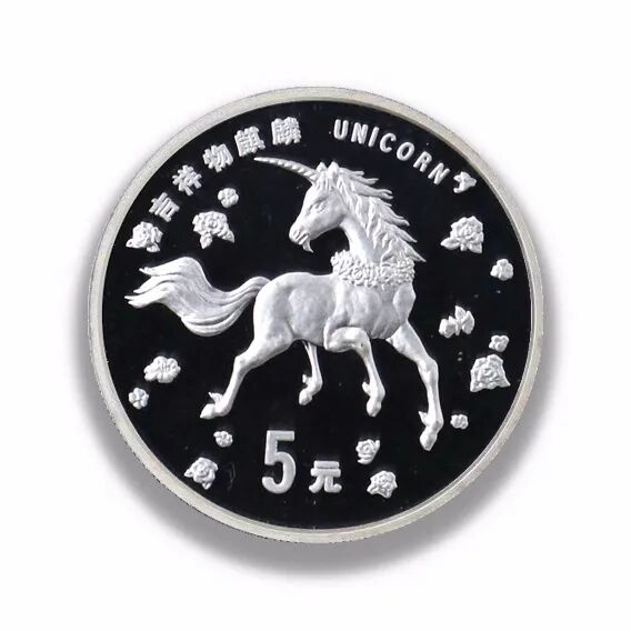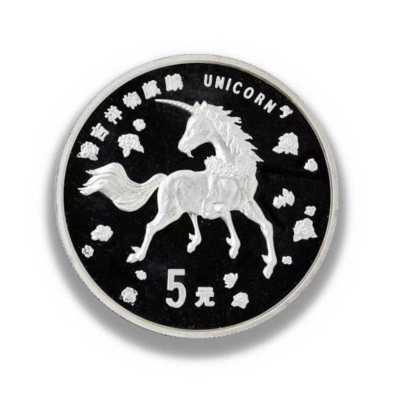麒麟不仅在中国广为人知,在西方文化中也有相对应的神兽——独角兽,是东西方神话的有趣交融点。麒麟系列纪念币的发行计划早在1992年提出,直至1994年才正式发行。两种吉祥物出现在同一枚币的身上,是中西文化交融的一种表现形式,在今天来说,已经很少能见到这种中西文化交融的纪念币了,所以这枚麒麟币更显弥足珍贵。