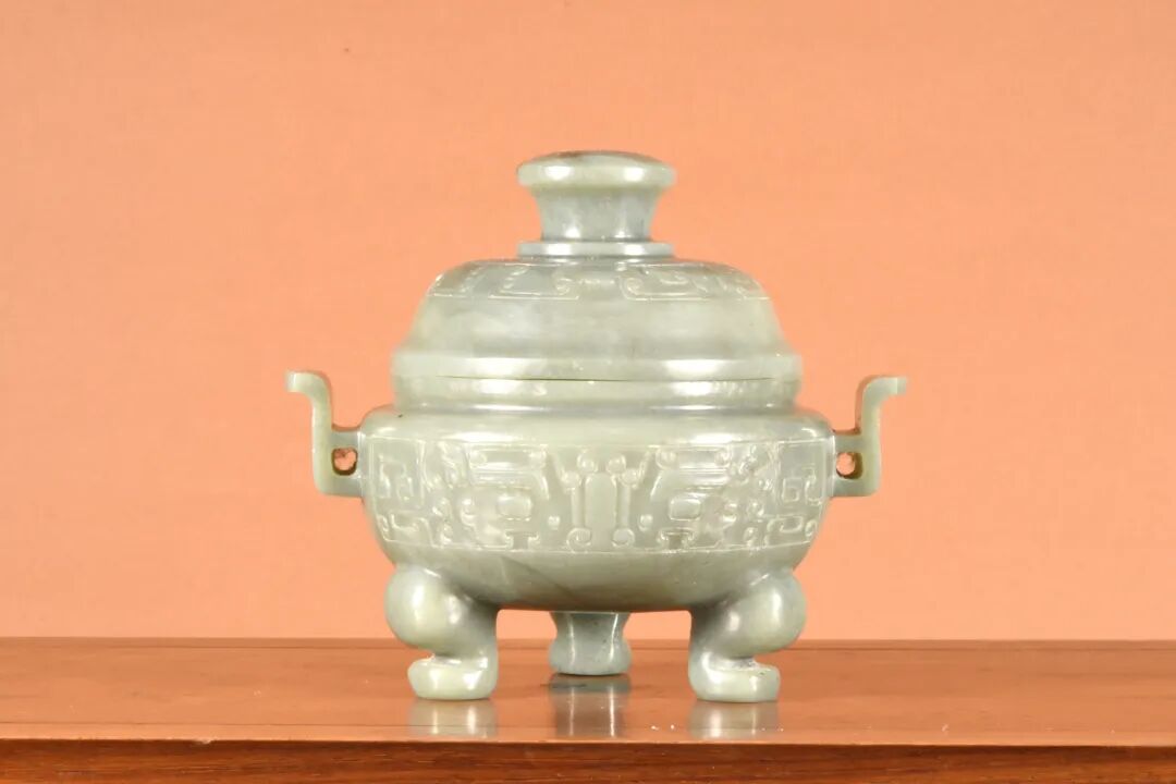 清 和田青玉饕餮纹三足炉