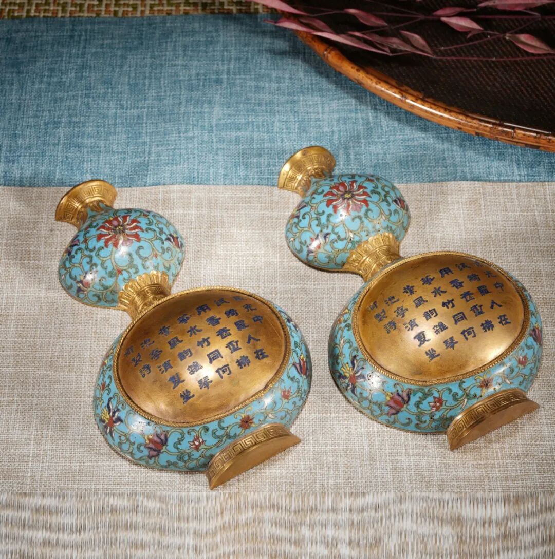 清乾隆 掐丝珐琅镂空花卉纹葫芦形花瓶(一对)