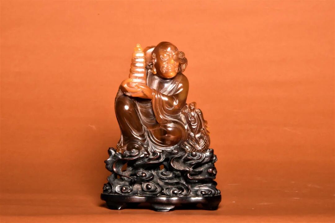 清 琥珀雕降龙罗汉
