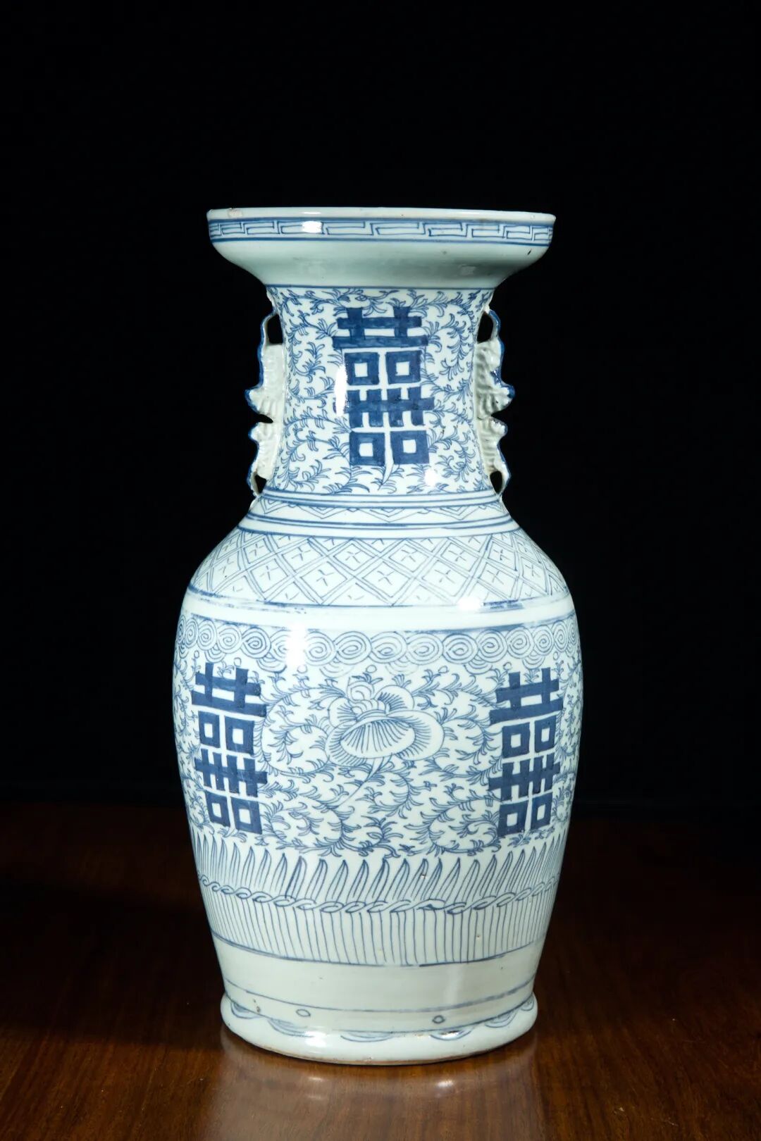 清道光 青花勾莲喜字150件瓶
