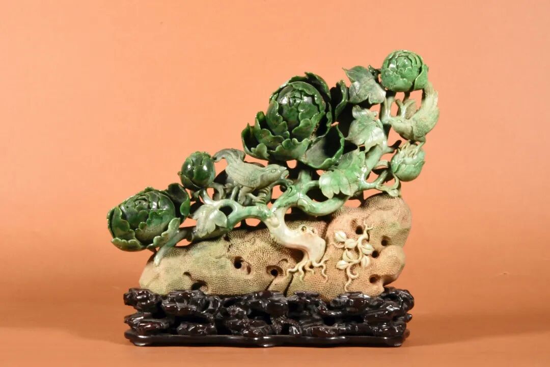 清 翡翠巧雕牡丹花摆件