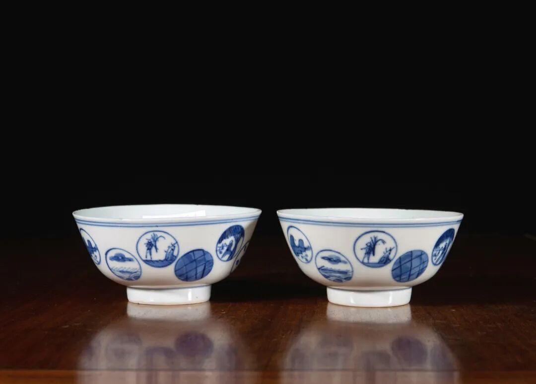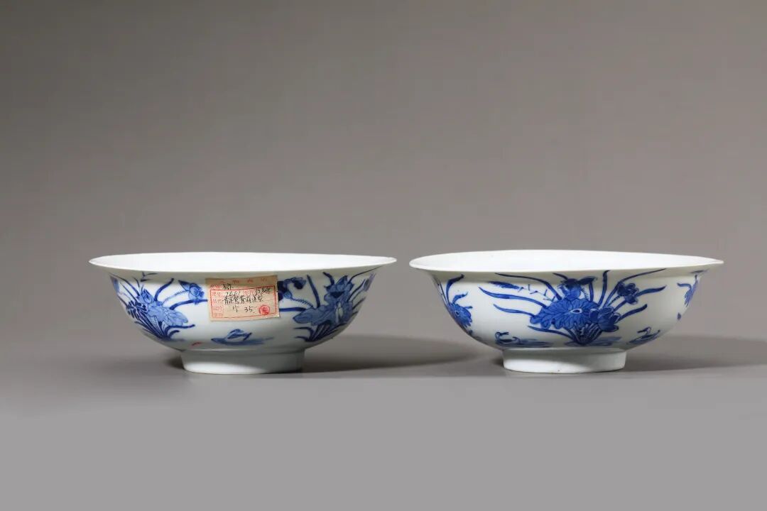 民国 青花鸳鸯荷莲纹盌(一对)