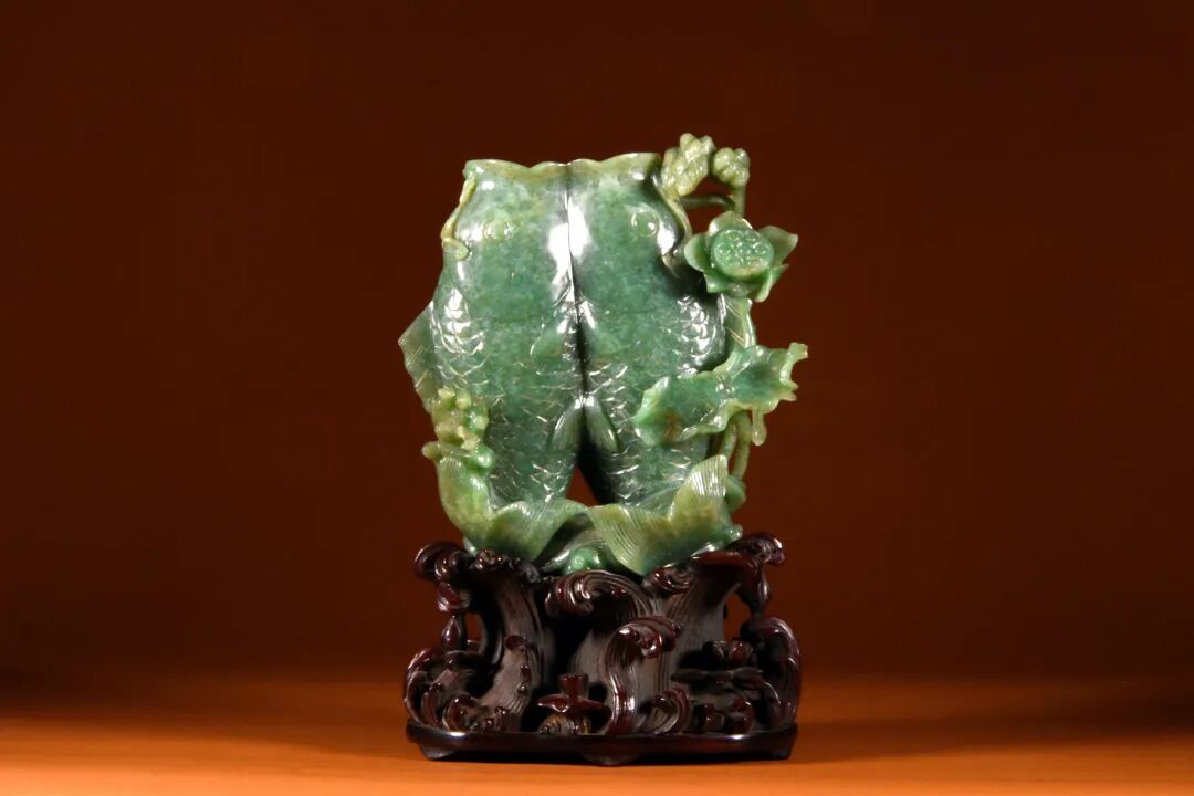 清 翡翠双鱼花插