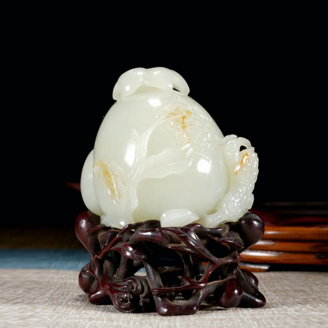 清 白玉寿桃摆件