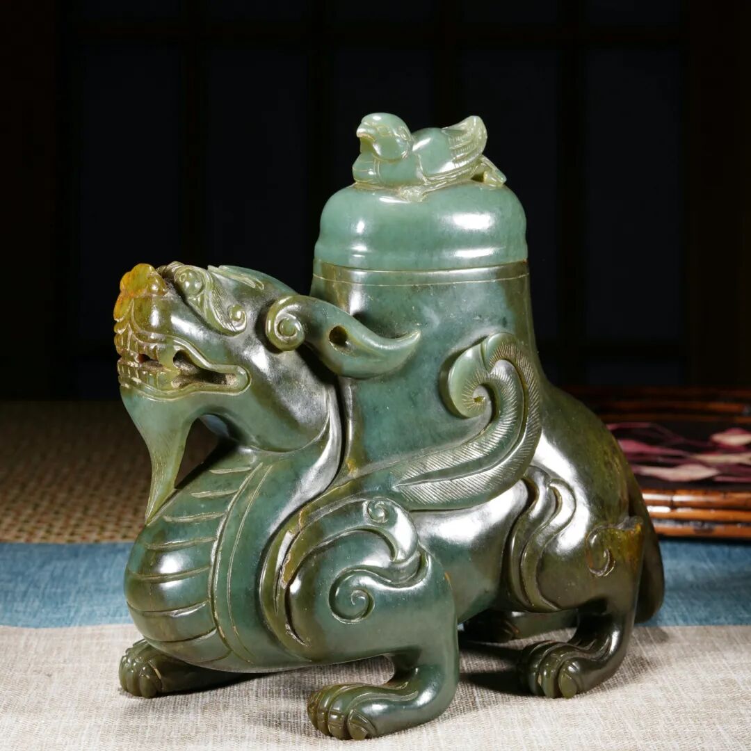 清 碧玉瑞兽龚杯