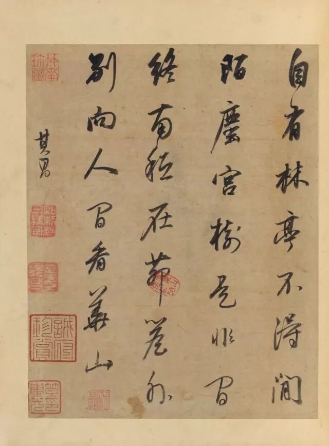 ▲(四)玄宰写梅花庵主笔意。对题:自有林亭不得闲,陌尘宫树是非间。终南只在茅檐外,别向人间看华山。其昌。