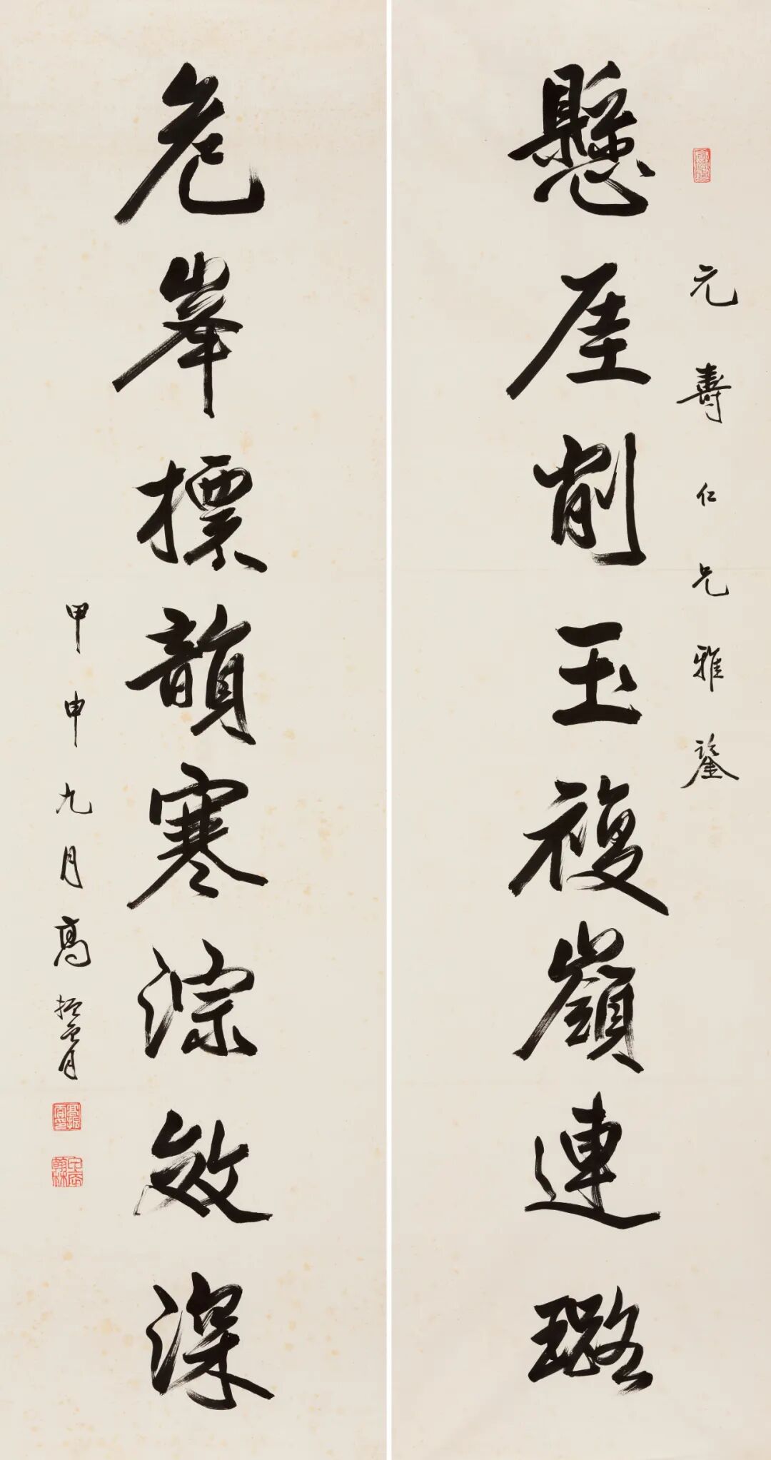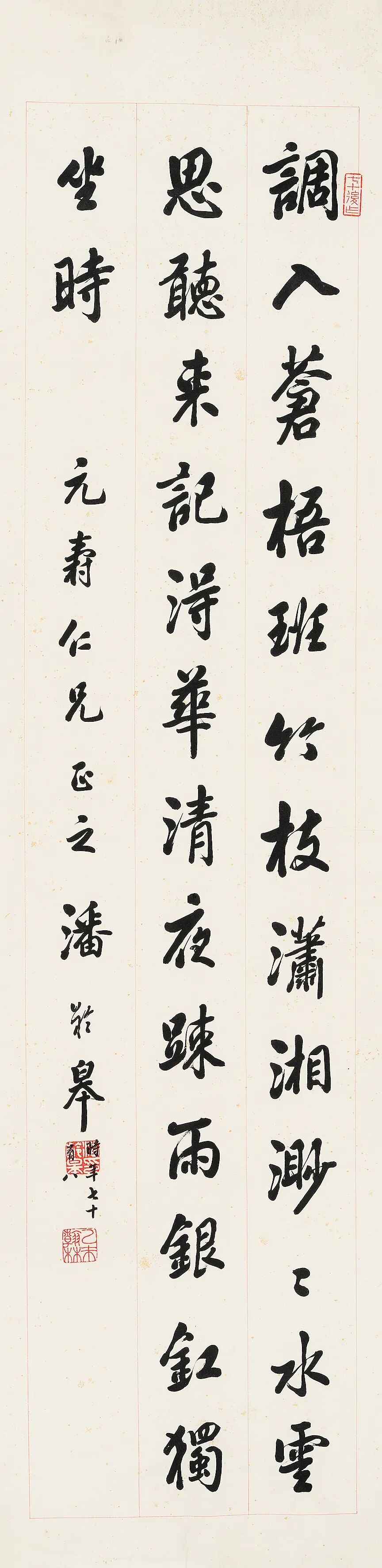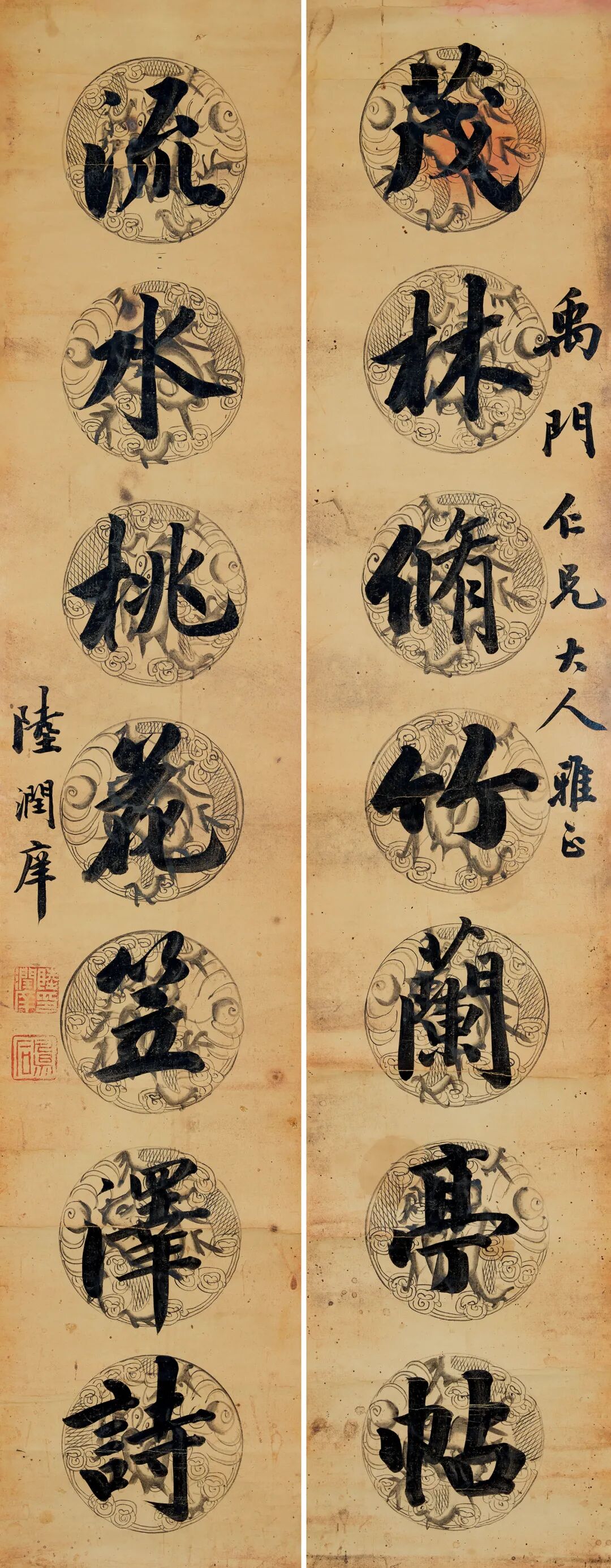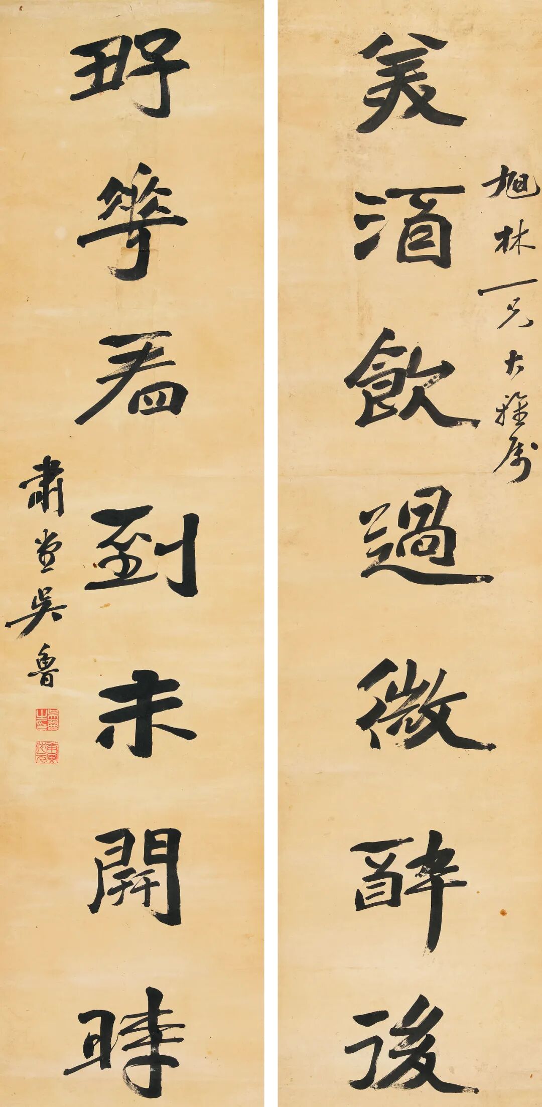 同场亦为藏家呈现光绪十六年殿试状元及第,授翰林编修,福建科举时代最后一个状元吴鲁《行书七言联》和同治十三年状元陆润庠《行楷七言联》等晚清状元书法作品。