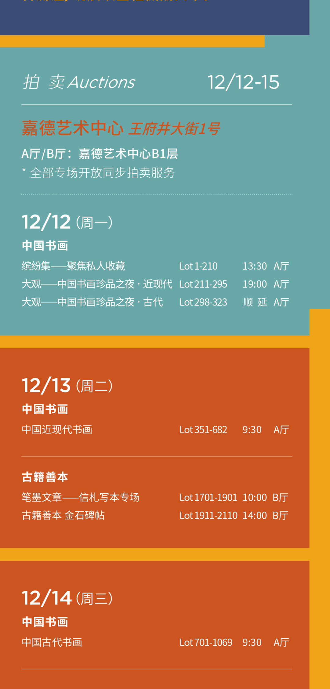 12月13日,将有中国书画和古籍善本板块的三个专场举槌拍卖。