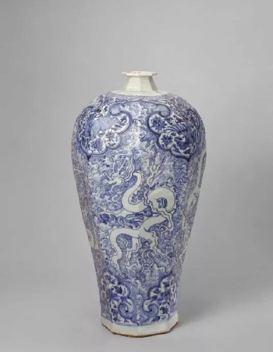 此器造型秀美,做工细腻,云龙纹描绘得形象鲜明,是元代青花瓷器中的典型器物。