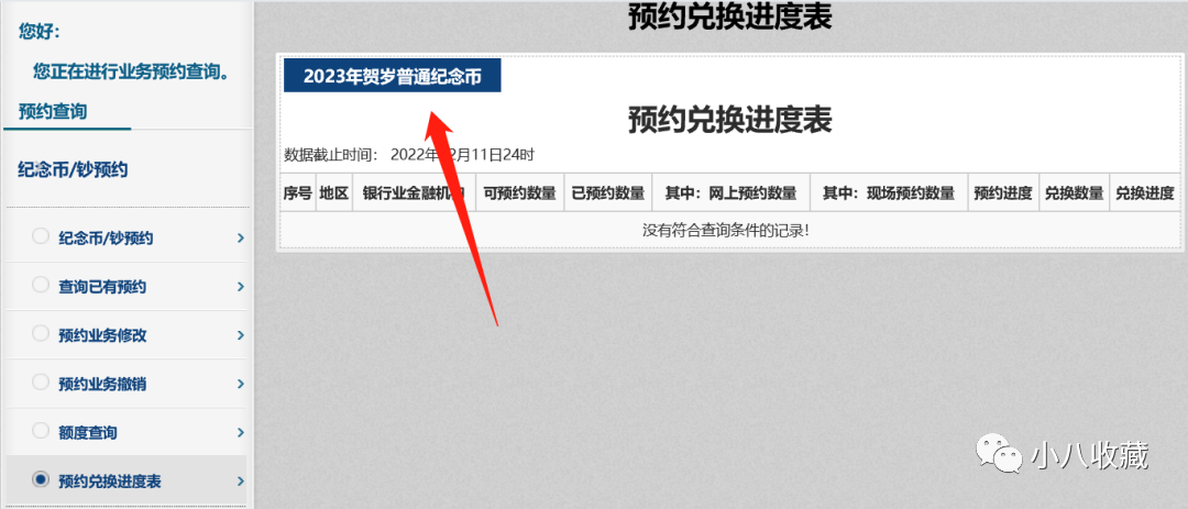 今天,小八发现,在交行的纪念币预约界面中的“预约兑换进度表,已经更新为2023年贺岁普通纪念币。