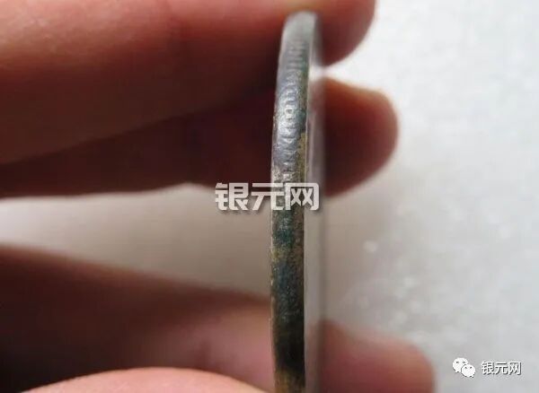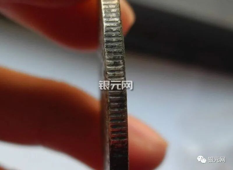 ③新疆版大头有两种边齿,一种是直边,区分直齿、断齿、轻微凹槽,尤其与饷银五钱的边齿如出一辙;另有一种真正意义上机器铸造的弧边,“银元网”在新疆机制银币中尚未发现相类似的;不管直边还是弧边,均与“卅八造”直边直齿还是有所区别的。