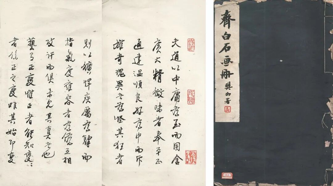 1932年徐悲鸿为齐白石在中华书局出版的《齐白石画册》封面及徐悲鸿作的序