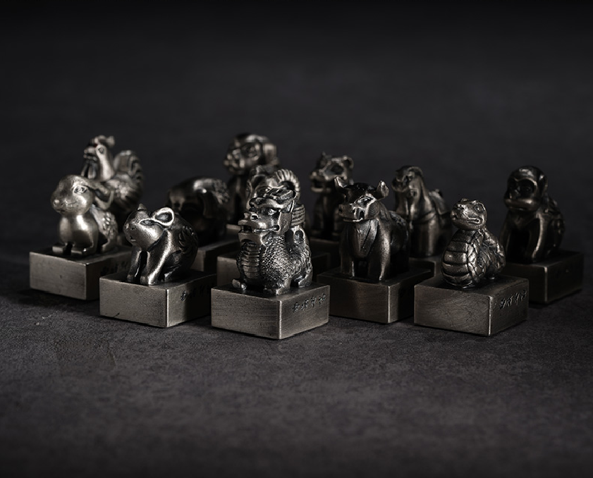 西泠印社十二生肖银印章,手工打磨,彰显雅致!
