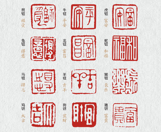 印面皆取自汉代印文中的吉语,传递出恒远的守护与祝福,不同的生肖对应不同印面。
