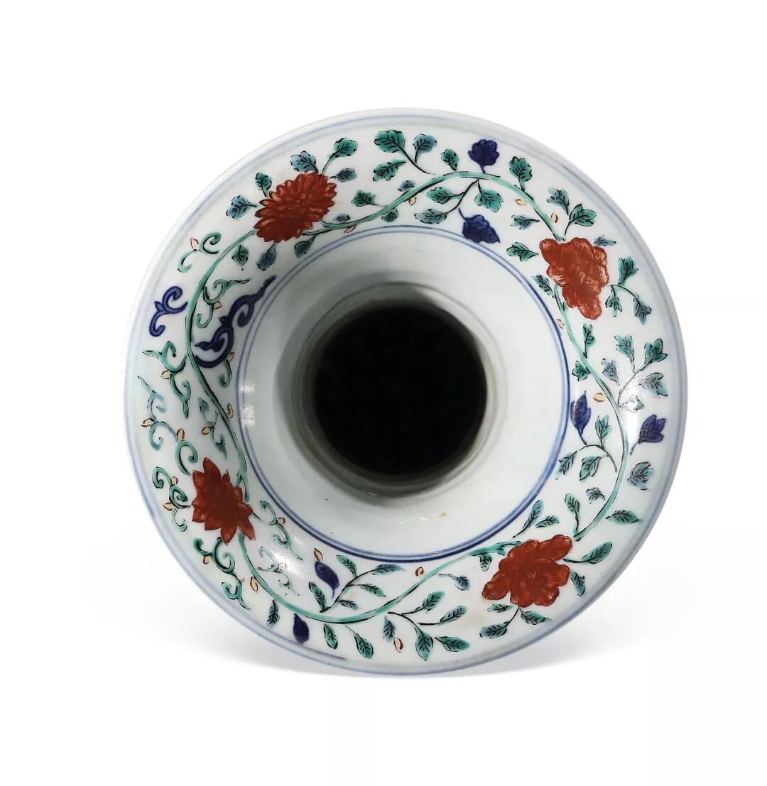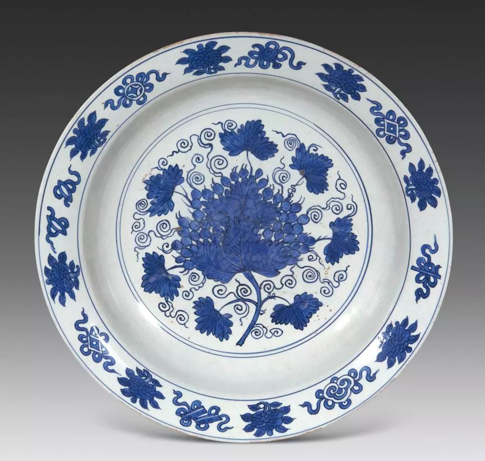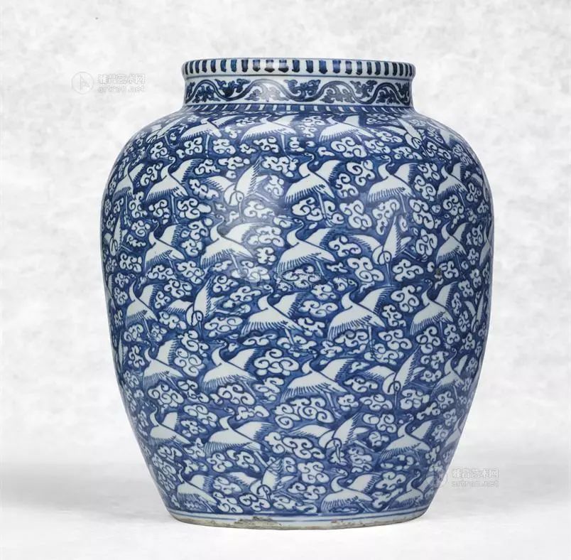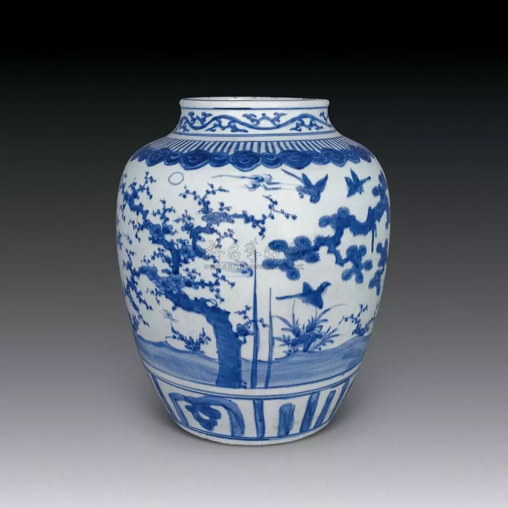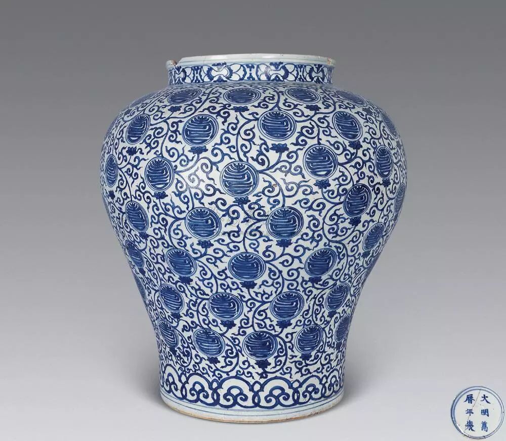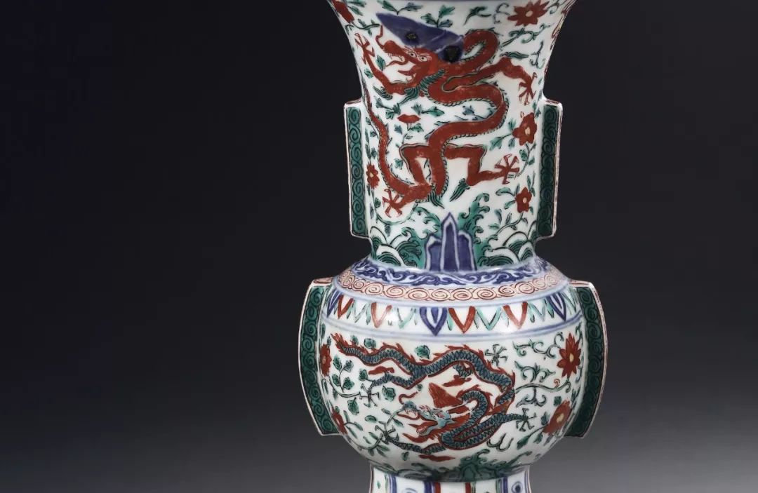 此式青花五彩龙纹出戟尊当为其中杰出之代表,造型源于上古青铜器,朴拙古雅。整器呈花觚型,于颈部、腹部、底部两侧突起出戟装饰,口沿内外壁均绘五彩花卉纹,颇为特殊;颈部与腹部四面皆绘以五彩寿山福海腾龙纹,蛟龙姿势各异,升降交错,诸彩搭配之下倍觉威猛有神。底部圈足,内心以青花书“大明万历年制”款本品器型基本周正,无明显变形之虞,是为万历官窑不可多得之佳作。 另外,此造型的设计与纹饰的布局构图关系密切,例如本品在造型上分出六部分,设计者正是借助造型的变化为繁复的纹饰提供有效的过渡,每一部分均独立成图,彼此又相互呼应,从而达到纹饰虽然繁复致密,但整体构图层次清晰的效果。而造型新奇别致,装饰妍丽繁缛,造型层次丰富,集彩绘、模印、堆塑、浮雕诸项技法于一身,相互辉映,各见其妙,其装饰风格为万历一朝御瓷之罕见,当为万历御瓷花方尊之翘楚。市场流通中本类作品极为罕见,可查近似例极罕;市场流通中可见矾红地青花绘缠枝花卉之例,与青花绘花卉例若干,唯五彩出戟尊例不见。 瓶为半个葫芦形,以凤纹为主题。上腹绘双凤纹,穿梭于如意云纹之中,下腹绘凤鸟立于地面,置身于牡丹花丛及洞石之间,及三只小鸟飞动于空中。口沿与腰部分别绘蕉叶纹及如意云头纹,圈足饰卷草纹一周。背面颈部青花双长方框内青「大明万历年制」款,上覆荷叶,下承莲花。 此罐直口,椭圆形深腹,至底渐敛,圈足。通体满施白釉,釉汁肥腴温润。腹壁以青花为饰,肩部及胫部环饰一周变形蕉叶纹,形成上下呼应之势。中部主体纹样由两组姿态各异之孔雀组成,一只立于洞石牡丹之侧,一只回首顾盼,身姿袅娜,颇富神韵,其间点缀花蝶蜜蜂,皆各具情态,一派欣欣向荣之景。其青花描绘精细而生动,笔韵浓淡相间,层次丰富,尤以翎羽之绘饰写实传神。底心青花双圈内书「大明万历年制」六字双行楷书款。 孔雀作为瓷器纹样元代即已出现,而明承元制,瓷器纹样亦有延袭。大英博物馆藏一民窑嘉靖年间孔雀罐,大小及装饰纹样与本品相类,但整体做工与本品不可同日而语,仍可兹参照为时代之延烧。整器造型小巧雅致,构图布局疏朗,釉质甜润匀净,青花浓妍泛紫,描绘精细而不失工致,实为万历青花官窑不可多得之佳作。 杯撇口,弧腹,足靶起竹节式凸棱。外壁青花地留白纹饰,饰九只不同海兽浮游于海水中。高足饰海水纹,足节凸花如意纹。盌心饰八梵文围绕中间梵文。底青花双圈内书「大明万历年制」楷书款。如此器的万历款高足杯未见其他例子的着录。此款器源自宣德原型,台北故宫博物院收藏一件宣德款青花地白波涛海兽纹凸节高足杯。 盆胎体厚重,釉质光润,折沿花口,弧腹,平底。底部无釉一圈,底心内凹,书青花“大明万历年制”双圈双行六字款。此盆状若梅花,六瓣绽开,在明代宫廷档案原名称之为“梅盆”。外壁绘缠枝莲纹,内壁彩绘“满地娇”图。盆内壁及盘心均五彩绘姿态、颜色各异之鱼,水草浮萍漂浮摇曳,游鱼相互追逐,悠然自得,尤其盘心一尾青花大鲤由水中一跃而出,富具动感。 此器五彩彩绘华丽繁复,红绿二彩浓研相应,青花明丽泛紫,构图古拙之气尚存未脱,颇具意趣,深有万历年间五彩此器之风貌。万历五彩素负盛名,以红绿二彩炽烈取胜,《陶雅》云“万历五彩,草昧初开,往往显其拙相……皆非寻常匠手所能企及。”本品当为代表。 罐唇口,短颈,丰肩,腹下渐敛。外腹以青花留白技法绘百鹤祥云图,多数仙鹤昂首展翅朝左上飞翔,少数回首顾盼。底涩胎,中心内凹白釉,青花双圈内书「大明万历年制」楷书款。嘉靖、万历二朝崇尚黄老之道,鹤因寓有福寿之意,故成为当时最盛行的纹饰之一。 本罐线条饱满,敦实可爱,通体纹饰以釉下青花结合釉上五彩绘就。腹部主体分绘二图,一侧为相会图,庭院之中,主宾对坐交谈相欢,身边各立随仆;另一侧为课教图,芳园之中,塾师端坐讲授,学童伏案疾书,另有二仆托物侍立。整器所绘人物形神俱佳,笔法古拙,稚气未脱,颇具意趣。画面设色华丽炽烈,红绿二彩浓妍相映,青花幽丽匀净,黄彩璀璨夺目,其用色之巧妙,已至出神入化之境,深得万历五彩之精髓。 有明一代,佛教深入社会政治生活,反映在宫廷用瓷方面则是大量装饰着藏传佛教色彩的器皿自永乐朝起被烧造,如僧帽壶、梵文高足杯等,此莲花形盘即其中之一。莲花于佛教教义中象征“出于浊世,无所污染”,此盘拟取莲花为形,设计精巧,口内莲瓣的凹面有双勾垂云纹。盘心环饰两圈如意云纹,间以弦线相隔,中心书梵文。外壁上层莲瓣内画八朵折枝花卉,间以八个梵文相隔。下层莲瓣尖部画出叶脉纹,根部留白,显出莲瓣绽放之态。其釉厚润如玉,青花发色明艳,底部青花双圈内楷书“大明万历年制”官窑款识。其功用当为佛前供器,在密宗的理念中,该器所书的梵文为种子字,以草木的种子比喻佛、菩萨形象,写有梵文经咒和种子字的器皿是具有一种加持力,能得到佛法的保佑,加速修炼佛法的进程,此盘当为万历宫廷崇信佛教的一例佳作,国内外重要博物馆均有类似器物收藏,可作参照。 此器是迎合万历皇帝增寿的意愿而烧造的大器,缠枝莲托“寿”字组成“百寿图”,甚为别致。万历时期的青花百寿纹大罐沿袭了明嘉靖朝同类品种的装饰纹样,可参见《故宫博物院藏文物珍品大系—青花釉里红》中,页115,图105。但将开光内篆书寿字改为团寿